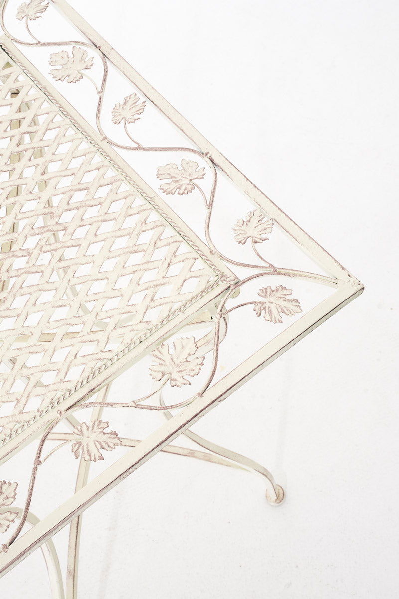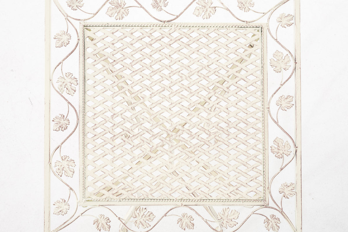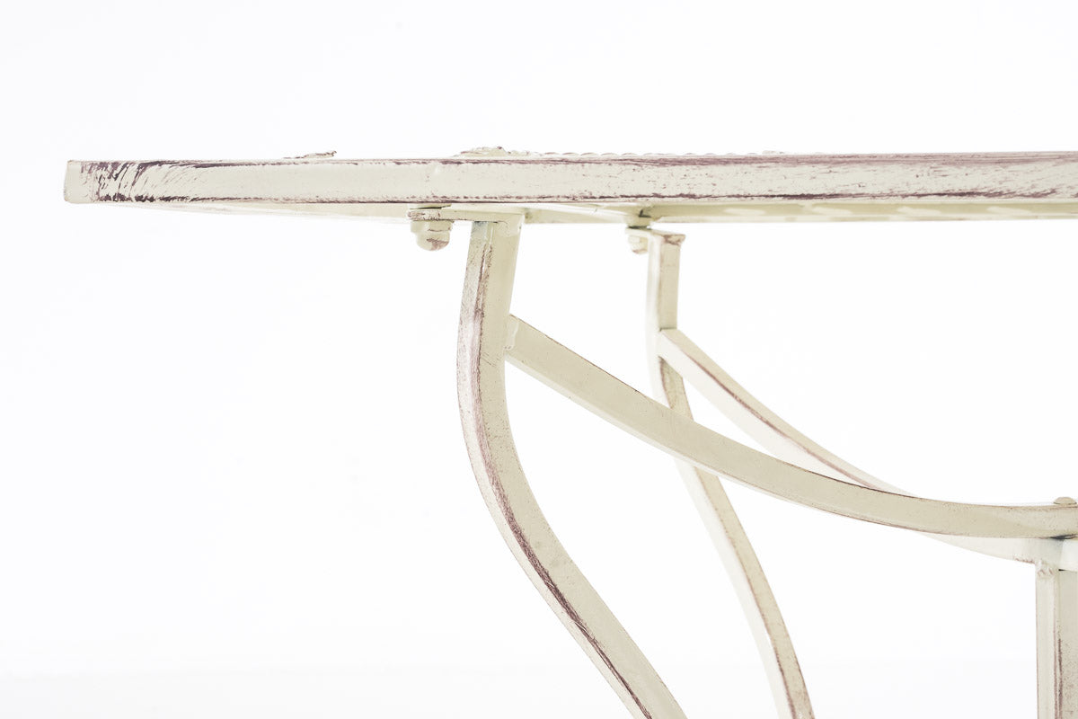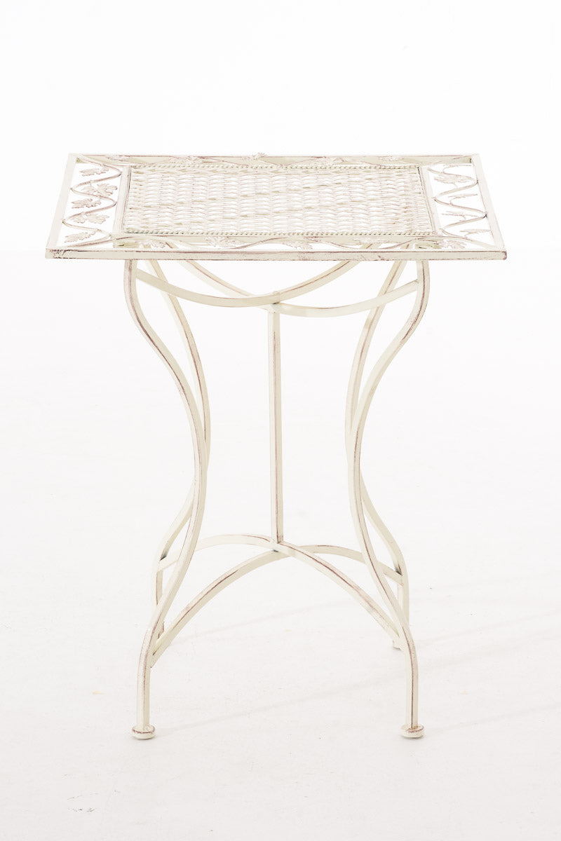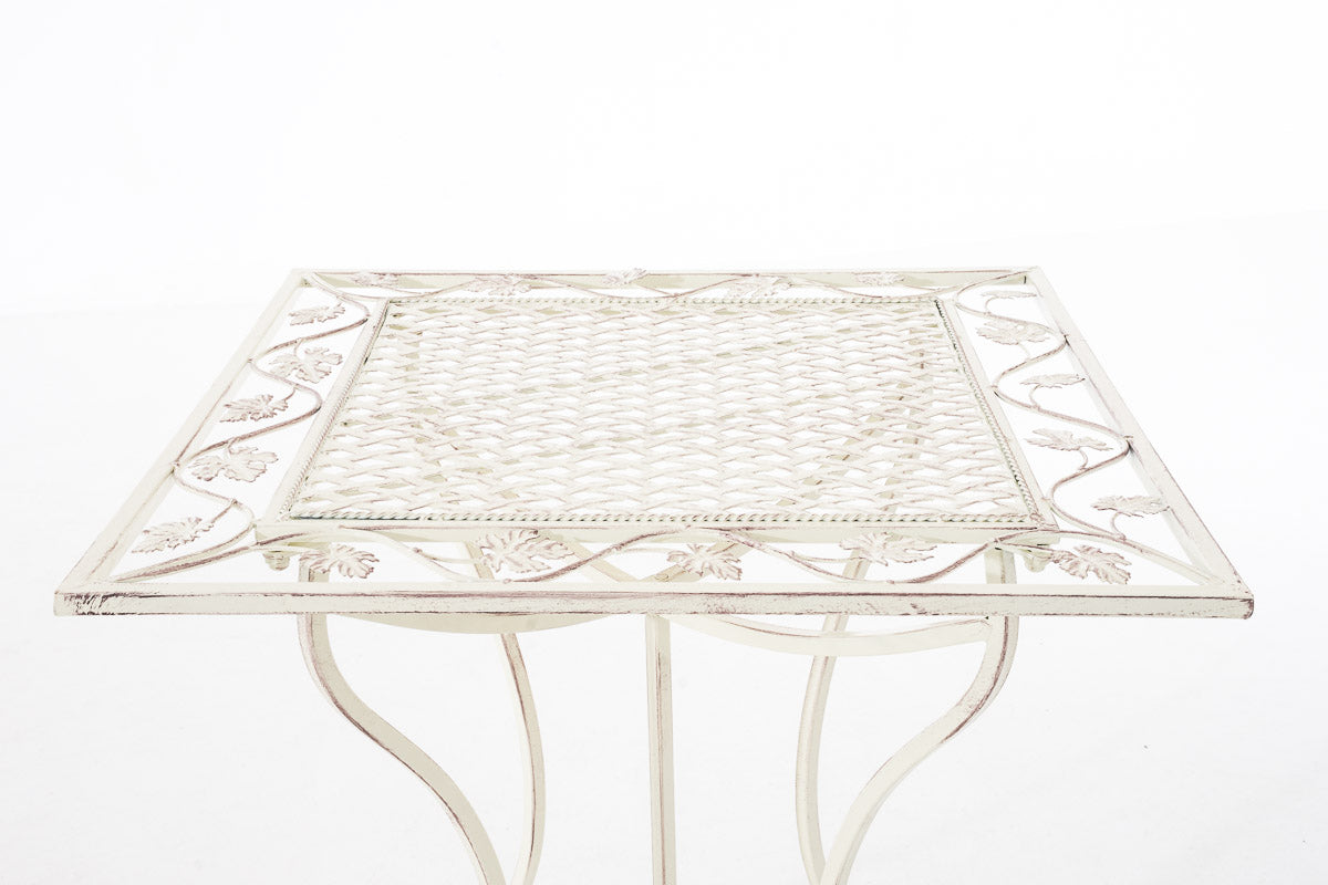 Table d’appoint pour jardin balcon décorative en métal blanc vieilli – Plateau carré élégant 10_0008015