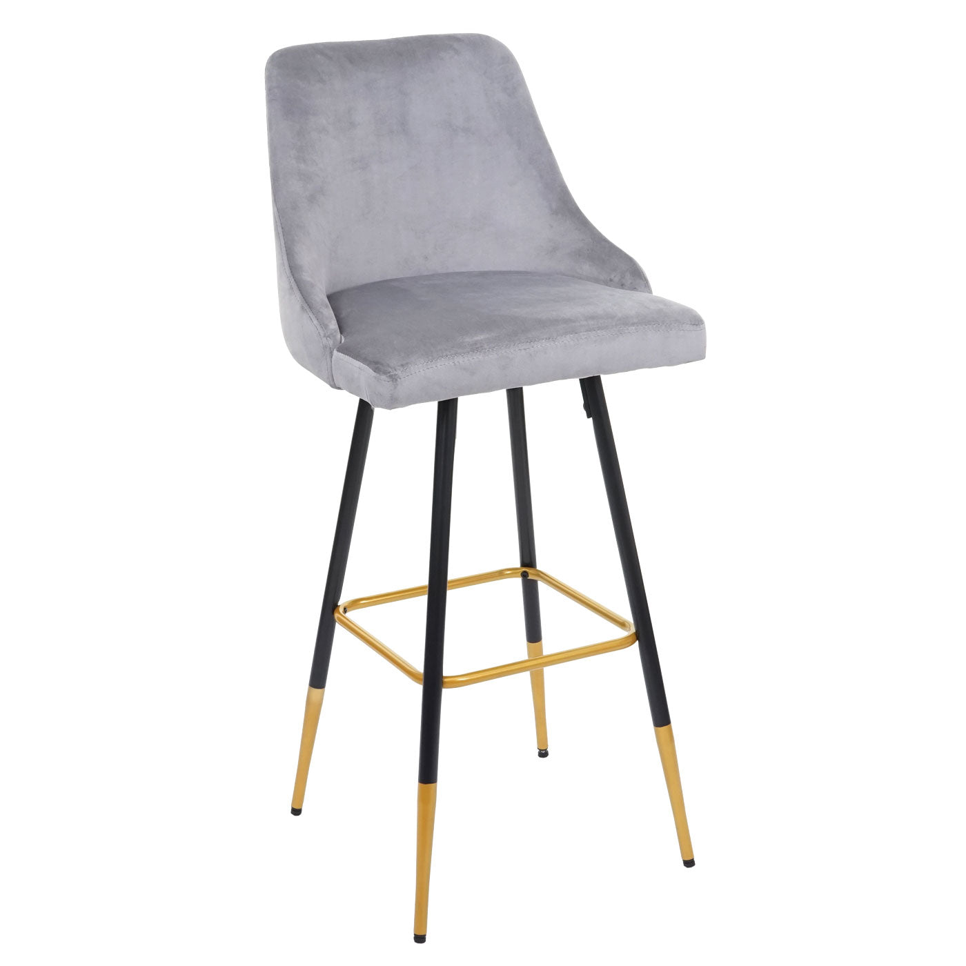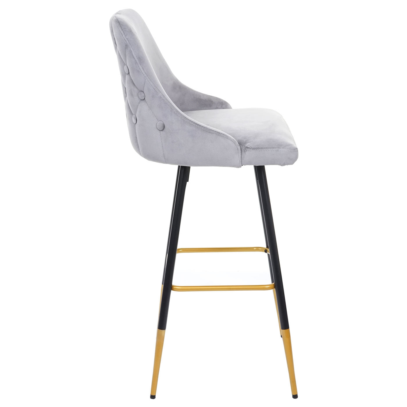 2x tabourets de bar comptoir chaise haute pieds dorés en velours design rétro gris