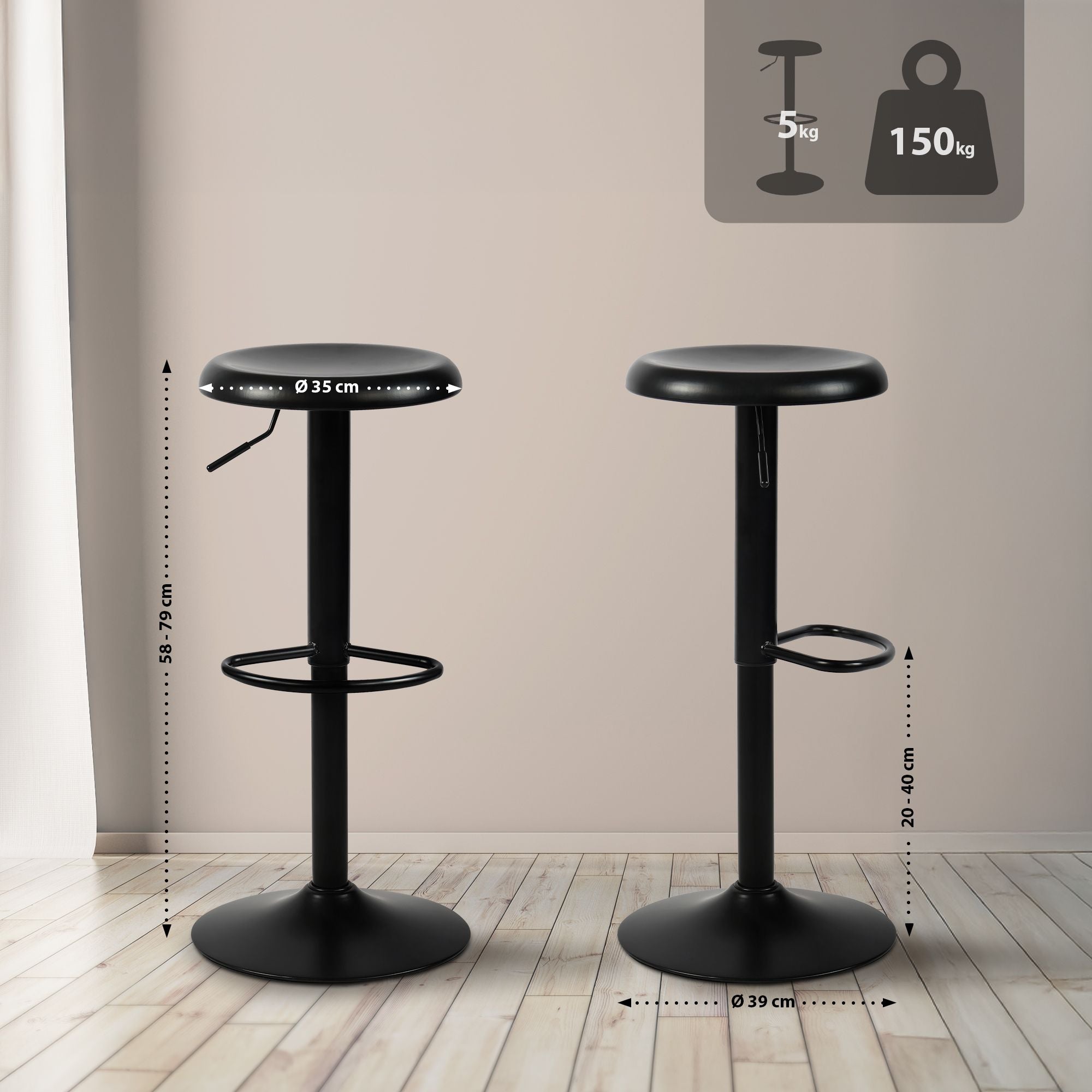 Set de 2 tabourets de bar hauteur réglable avec repose-pieds design moderne en métal noir 10_0005559