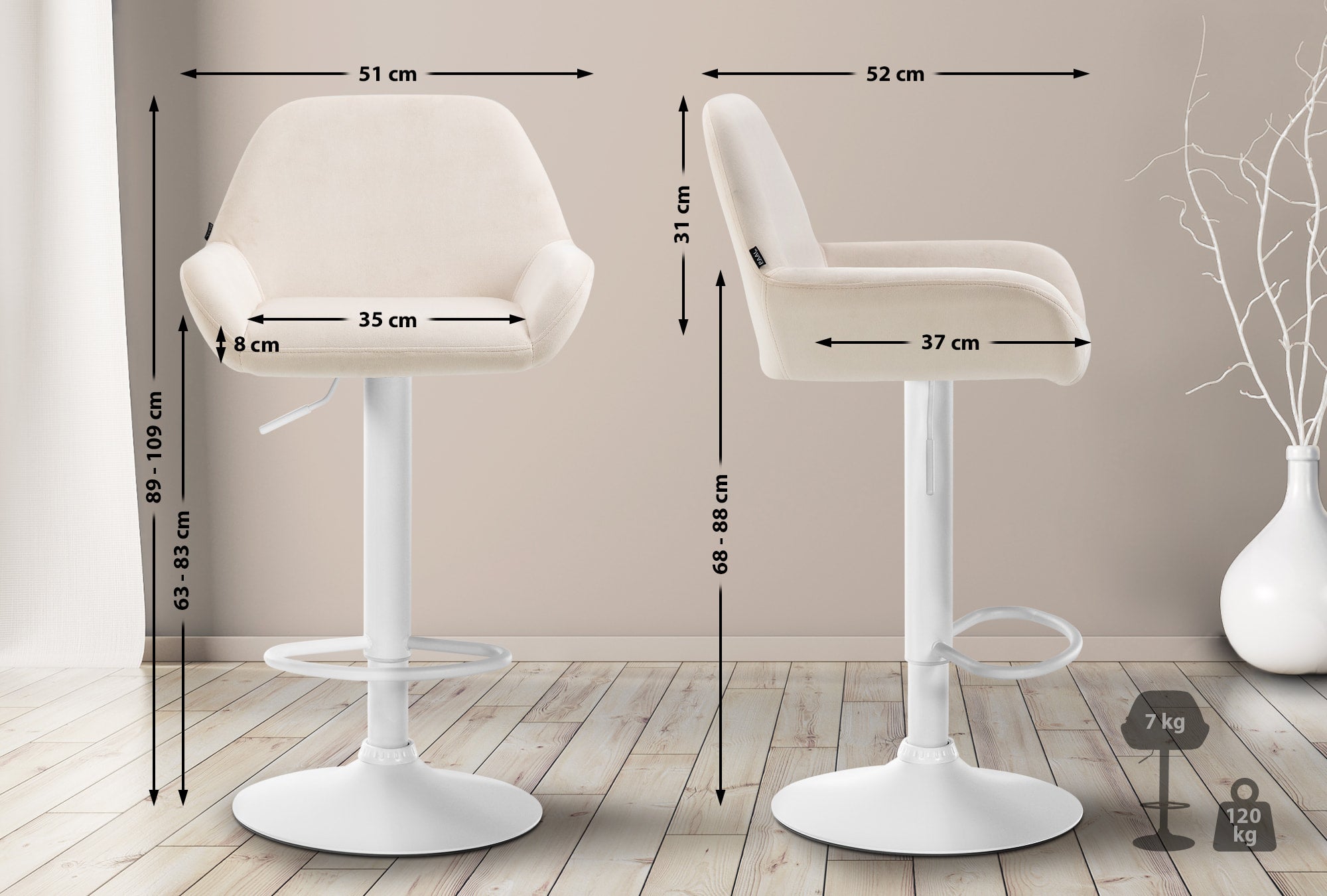 Lot de 2 tabourets de bar avec repose-pieds et accoudoirs en similicuir crème piètement en trompette métal blanc 10_0006885