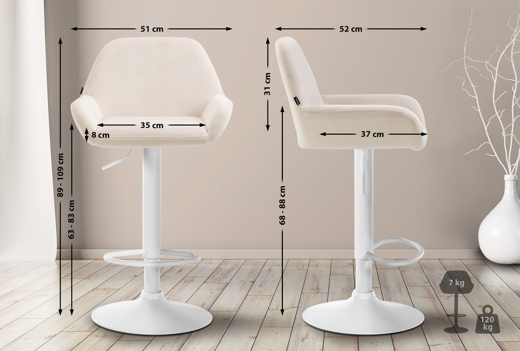 L'assise et le dossier sont recouverts d'un revêtement en velours facile d'entretien et offrent un confort optimal grâce à leur rembourrage. Les repose-pieds intégrés favorisent une position assise droite. La hauteur d'assise est réglable en continu grâce aux vérins à gaz. Les sièges pivotent à 360° pour plus de flexibilité.