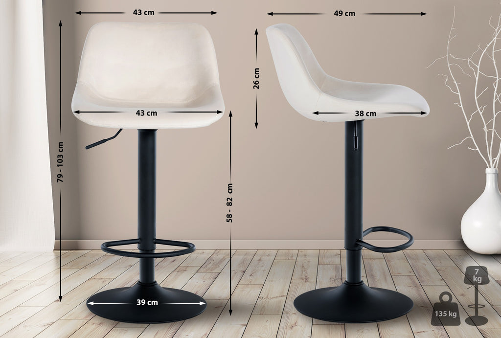 Lot de 2 tabourets de bar rotation à 360°en velours crème pieds en trompette métal noir 10_0006764