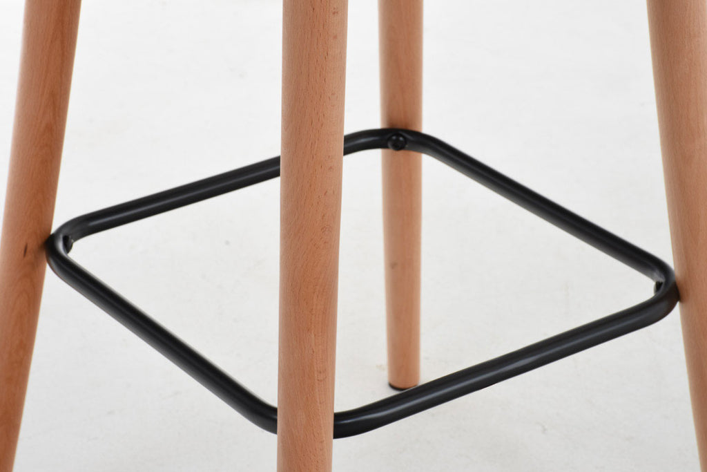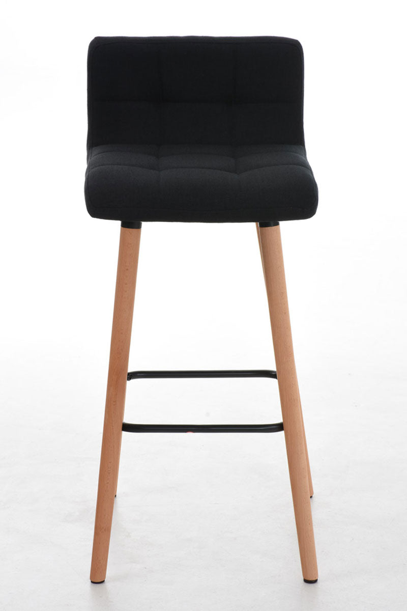 Tabouret de bar en tissu noir coutures décoratives pieds en bois avec repose-pieds 10_0000049
