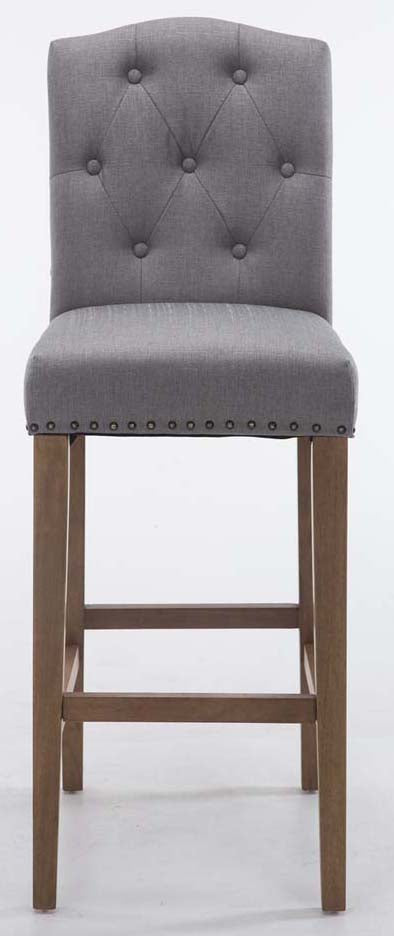 Lot de 2 tabouret de bar capitonné style baroque en tissu gris clair pieds en bois clair 10_0000790