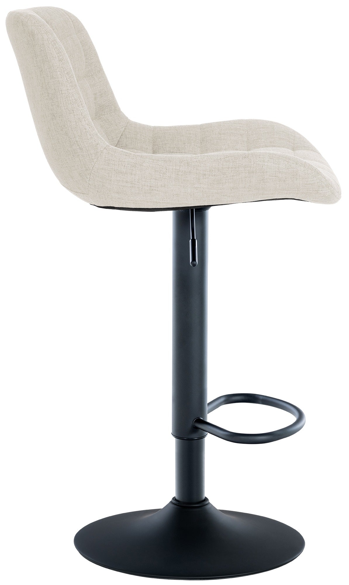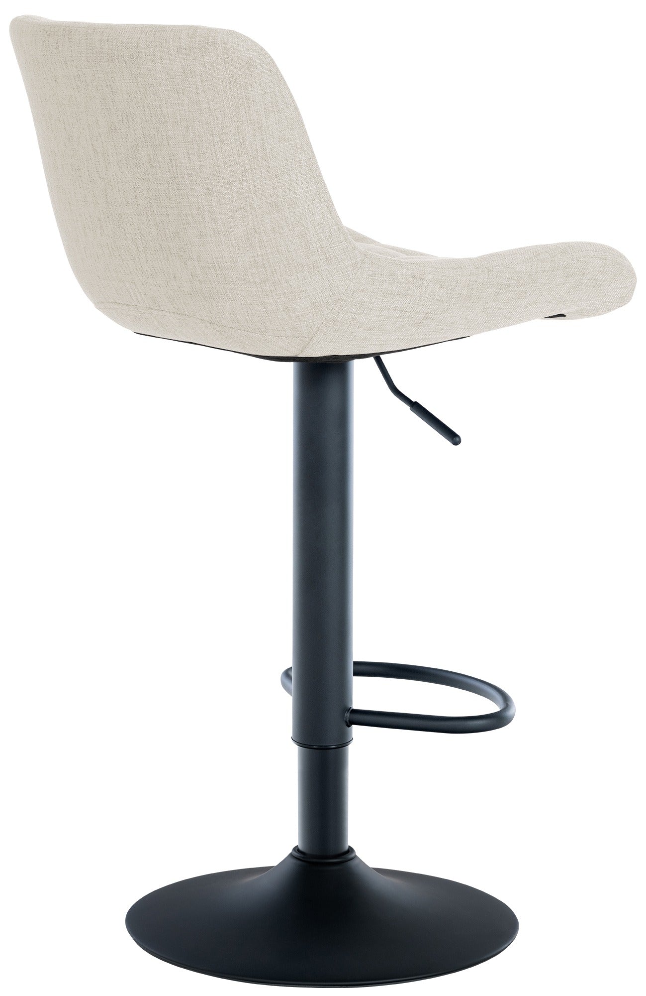 Tabouret de bar x1 en tissu crème avec surpiqûres décoratives carrées cadre métal noir avec repose-pieds 10_0005622