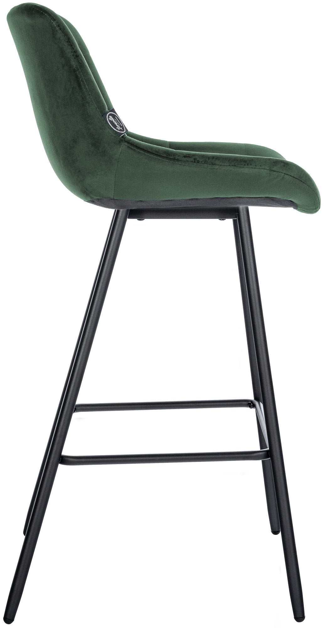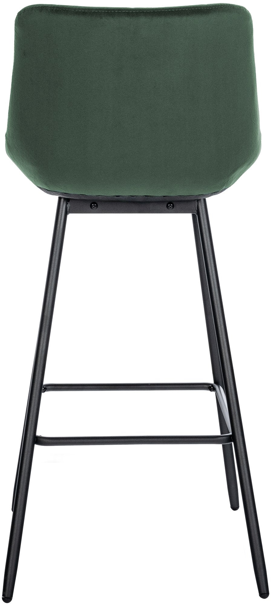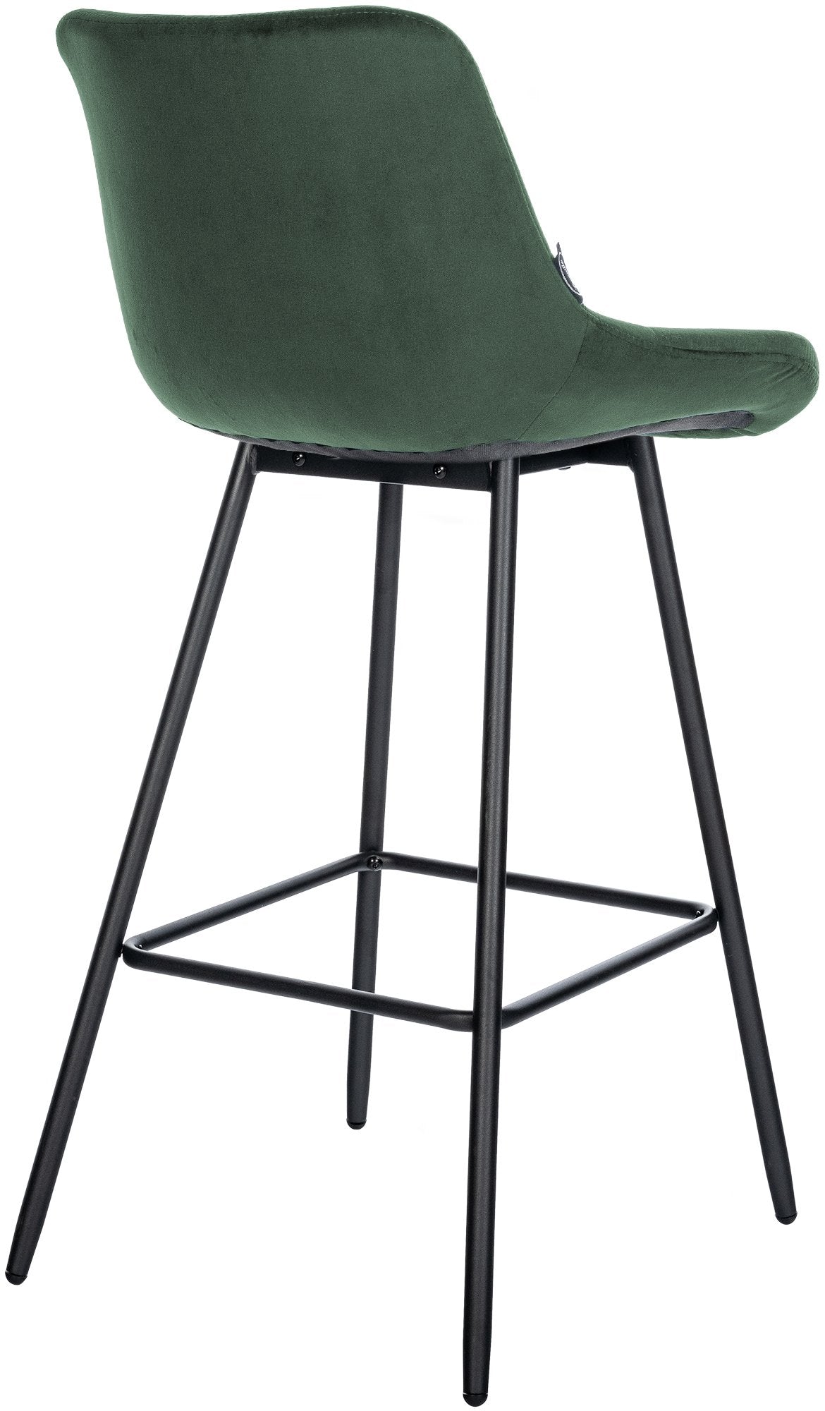 Tabouret de bar x1 en velours matelassé vert foncé cadre robuste à quatre pieds métal noir 10_0005628