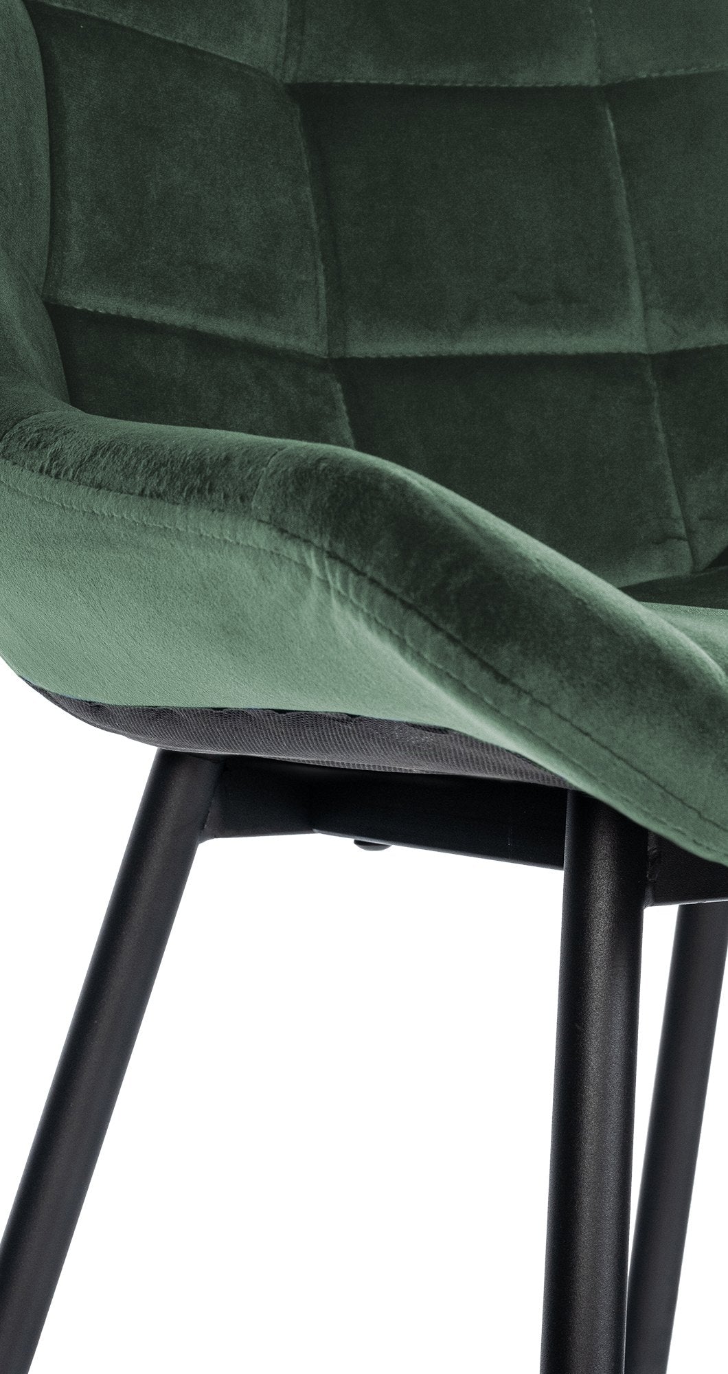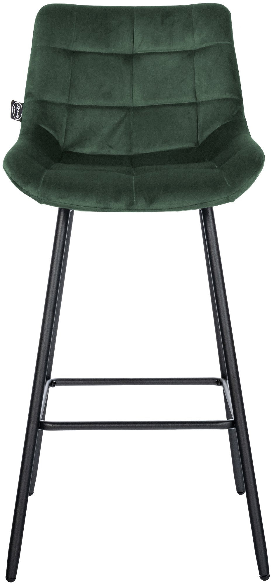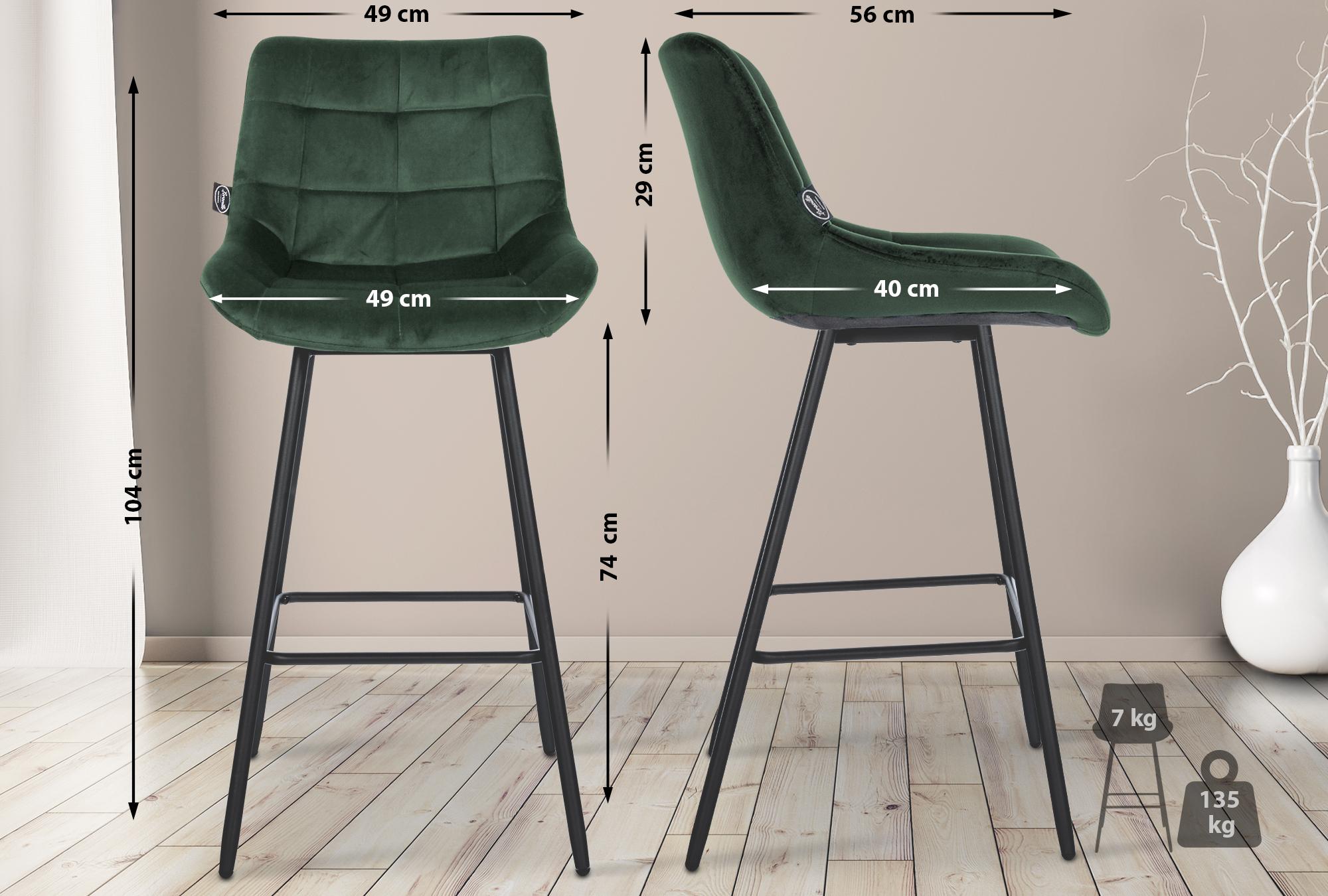 Tabouret de bar x1 en velours matelassé vert foncé cadre robuste à quatre pieds métal noir 10_0005628
