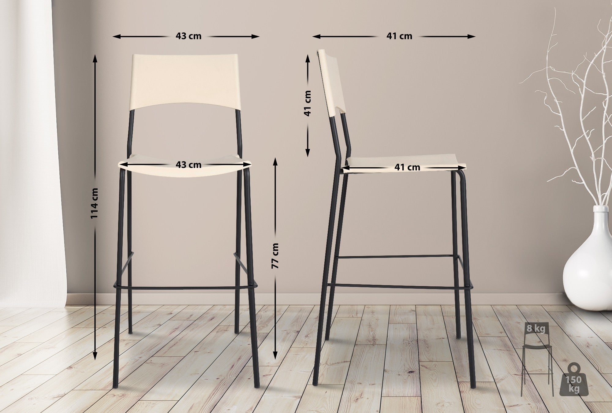Tabouret de bar x1 empilable assise en plastique crème cadre en métal noir à 4 pieds 10_0005629