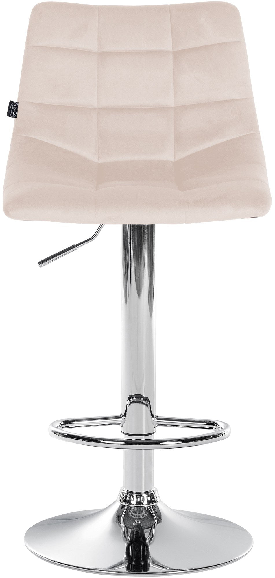 Tabouret de bar x1 moderne en velours crème motif matelassé piètement trompette métal chromé 10_0005660