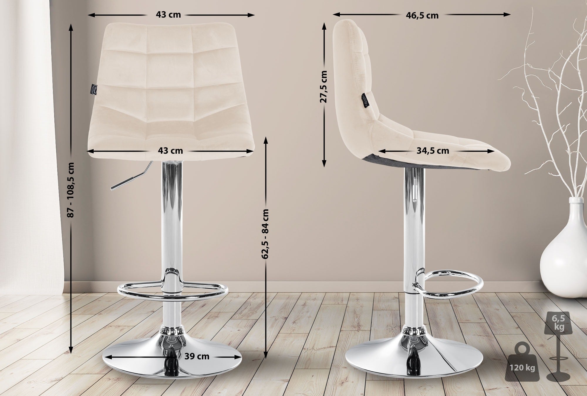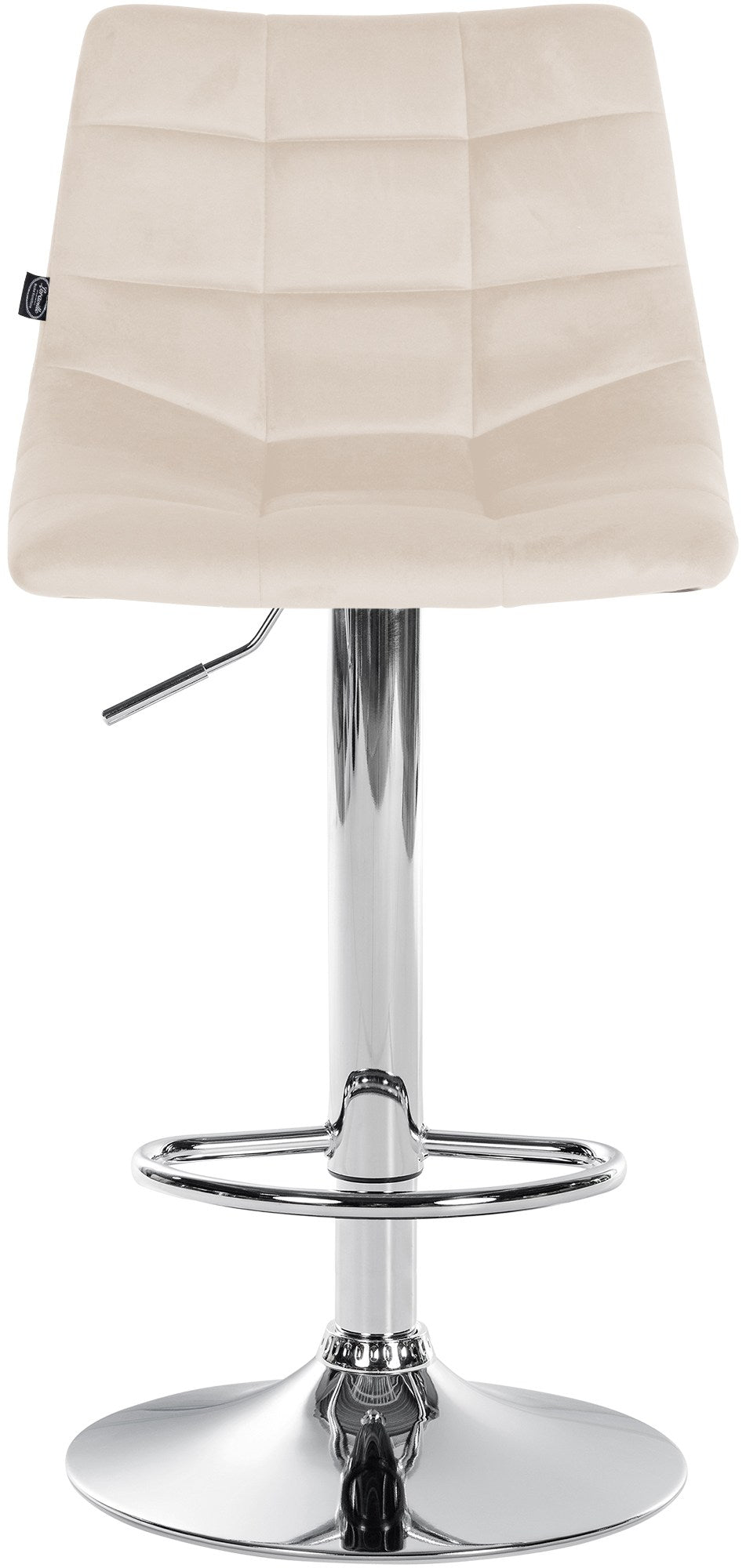Tabouret de bar x1 moderne en velours crème motif matelassé piètement trompette métal chromé 10_0005657