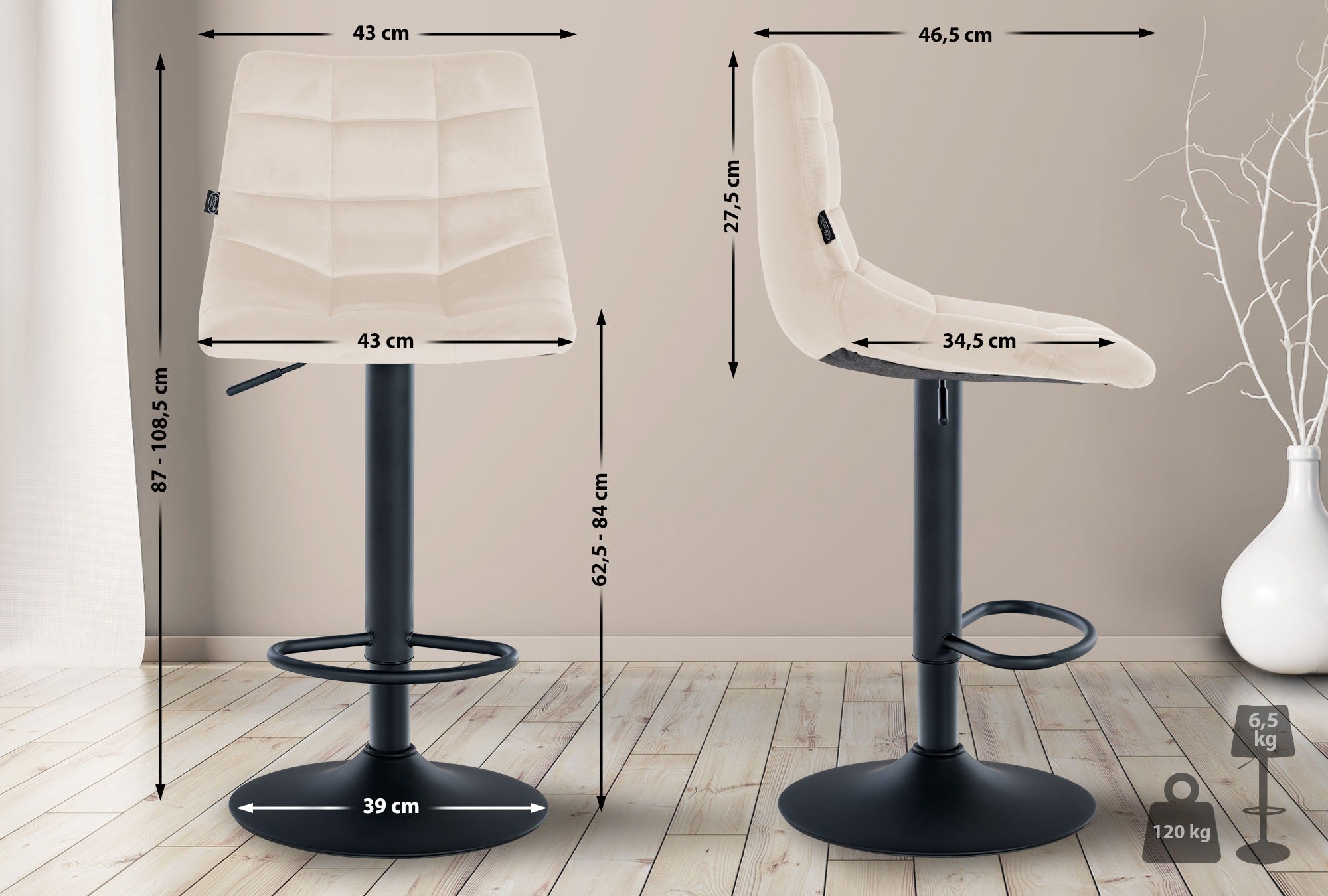 L'élégant tabouret de bar impressionne par son piètement en trompette réglable et son repose-pieds assorti, pour une assise confortable. La hauteur du tabouret s'ajuste rapidement et facilement à vos besoins, garantissant un ajustement parfait à votre table ou à votre comptoir. Le tabouret de bar pivote également à 360°, vous permettant de bouger librement.