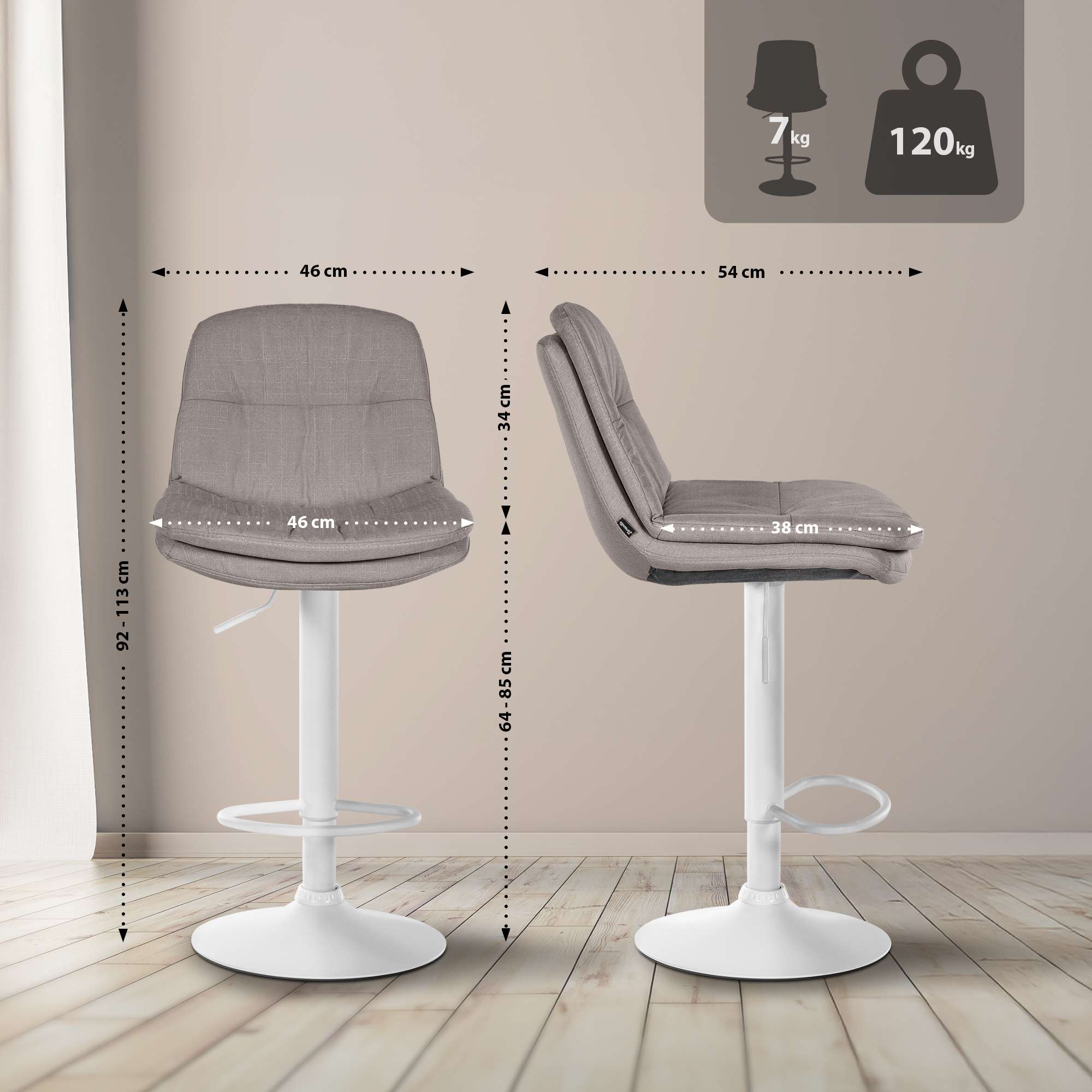 Tabouret chaise haute x1 pour cuisine et bar à assise moelleuse en tissu gris cadre en métal blanc 10_0005684