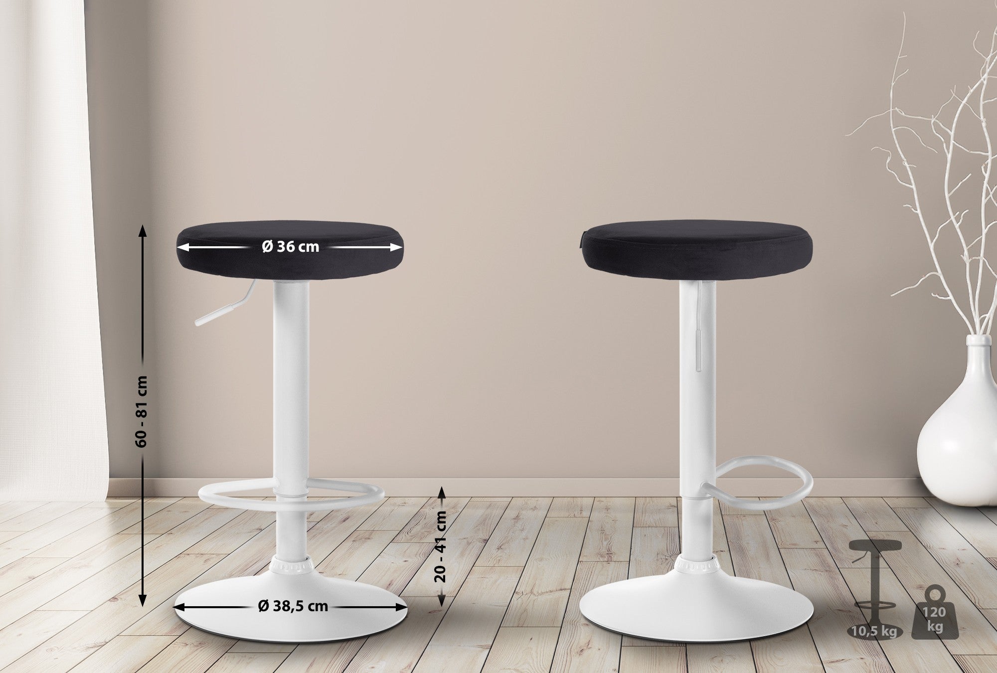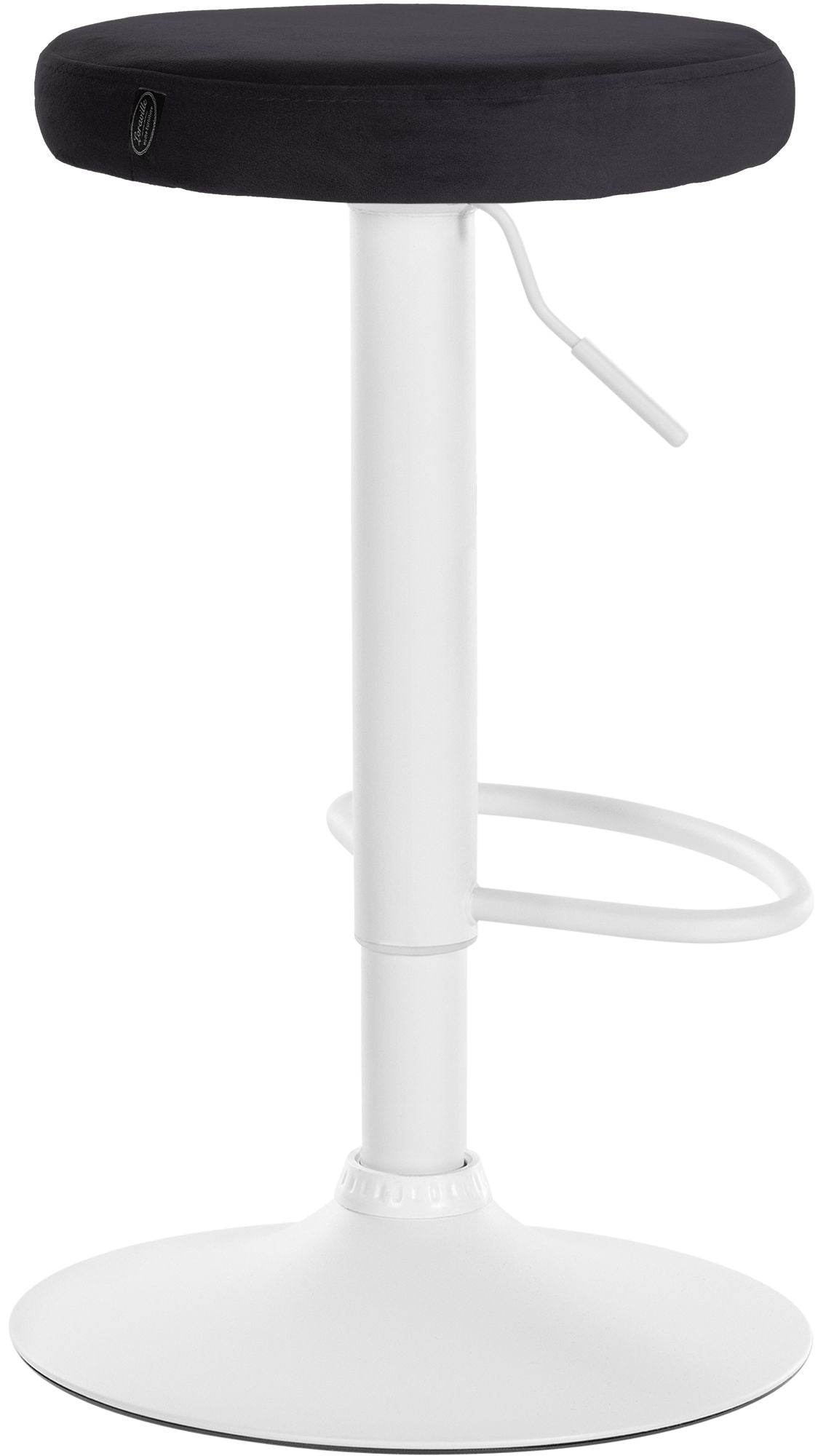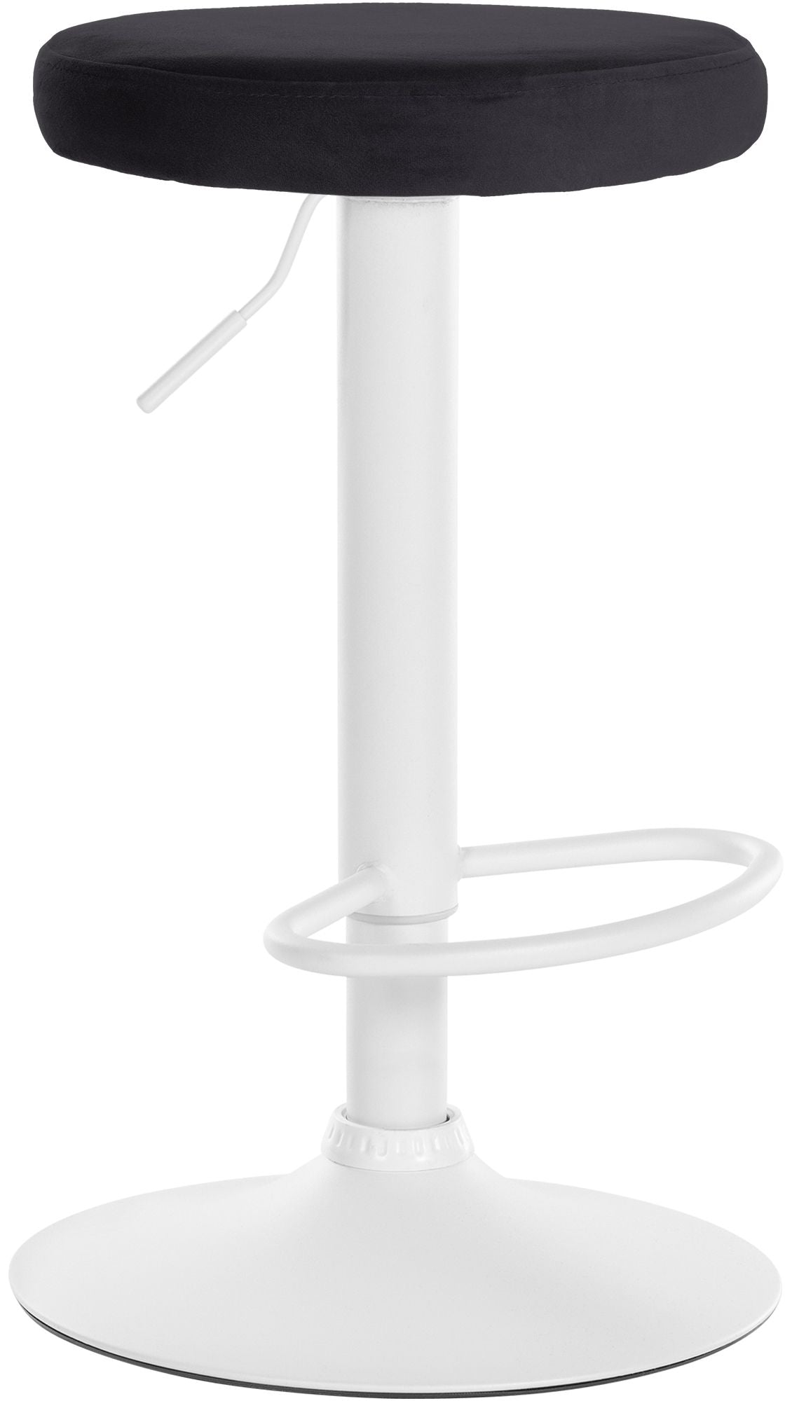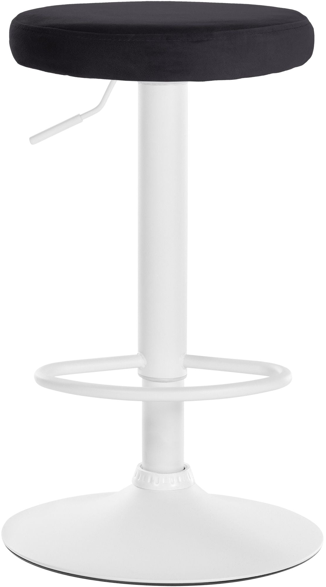 Tabouret de bar x1 design simple hauteur réglable revêtement en velours noir pieds en métal blanc 10_0005743