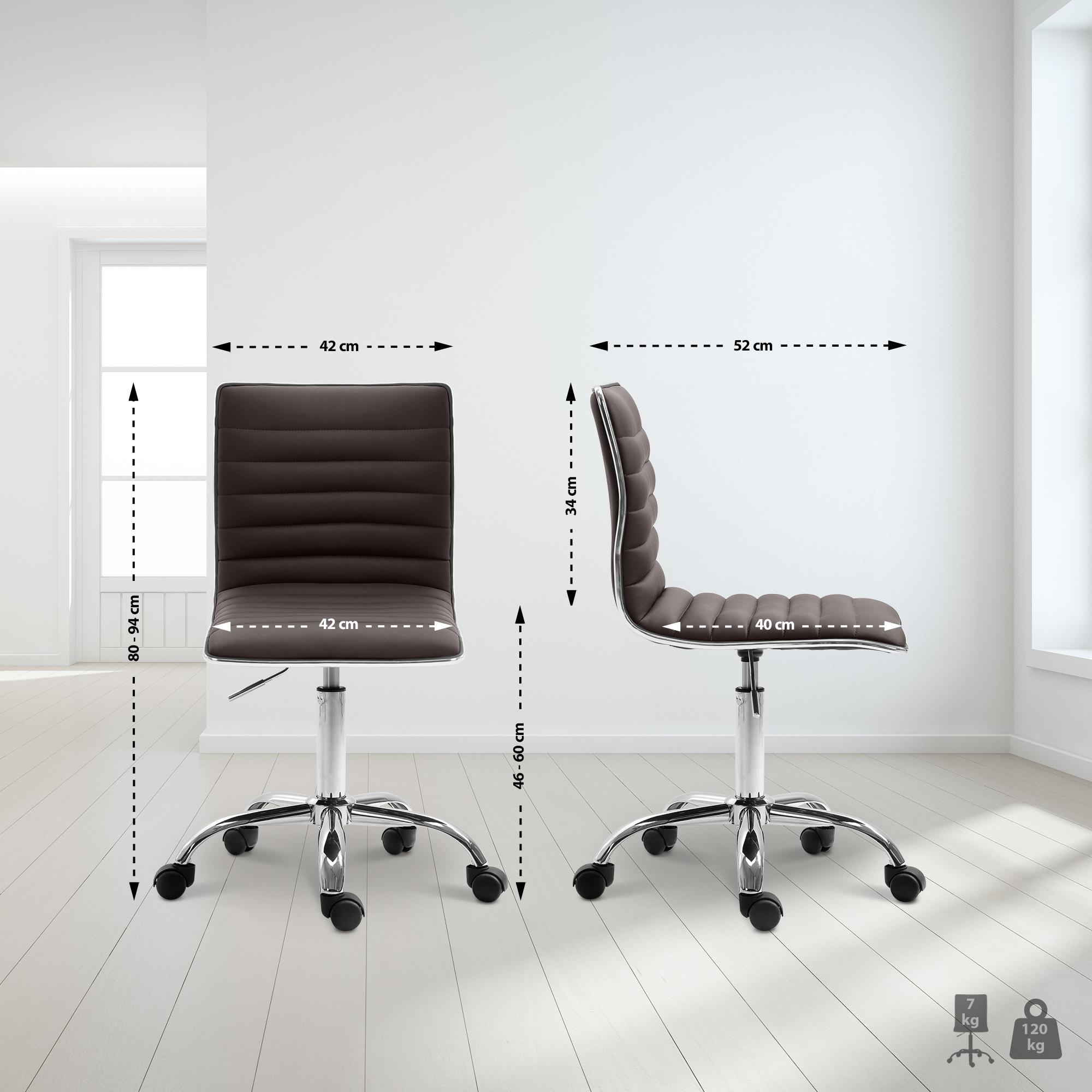 Tabouret de travail sur roulettes design à coutures horizontales hauteur réglable et roulettes PVC marron 10_0008362