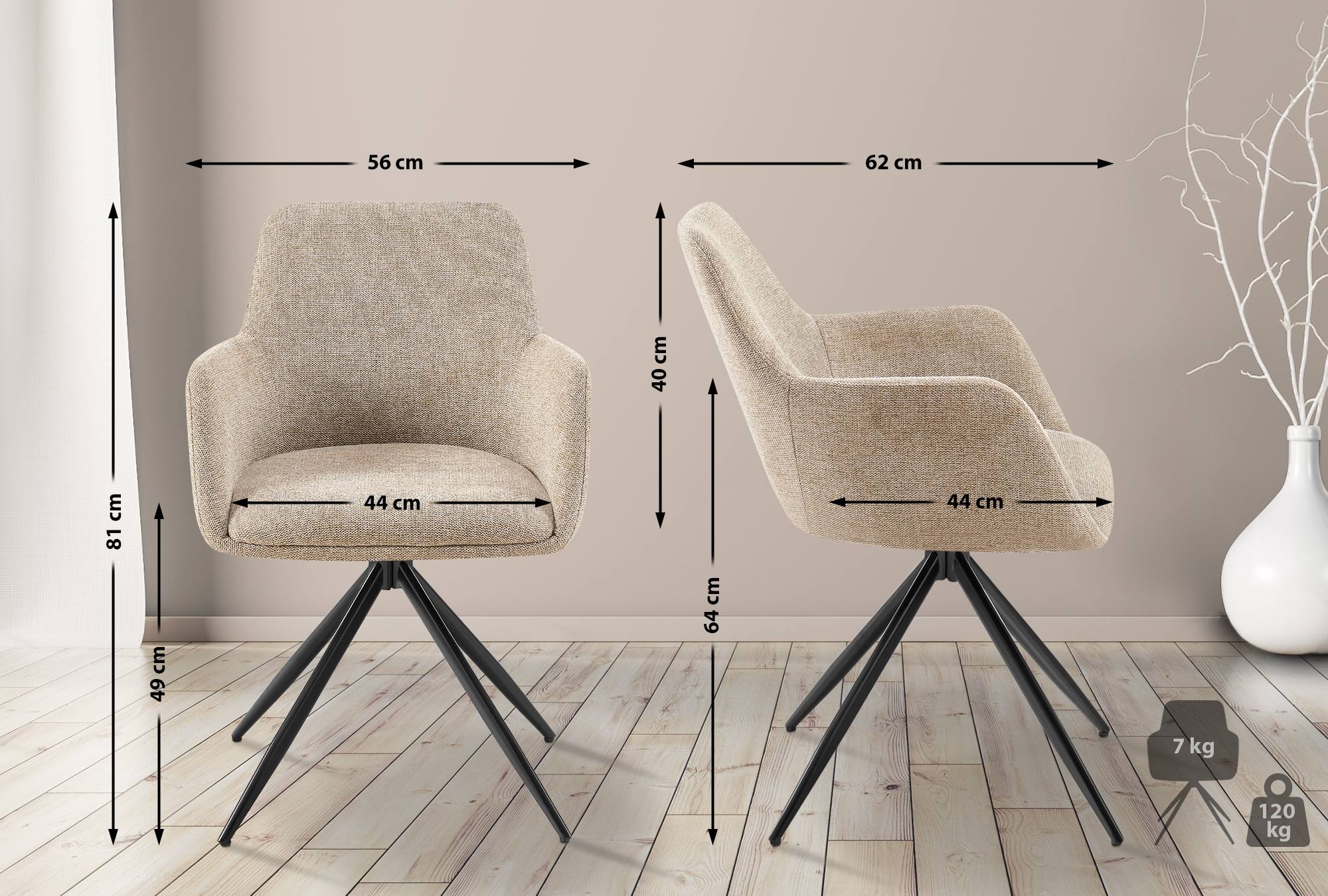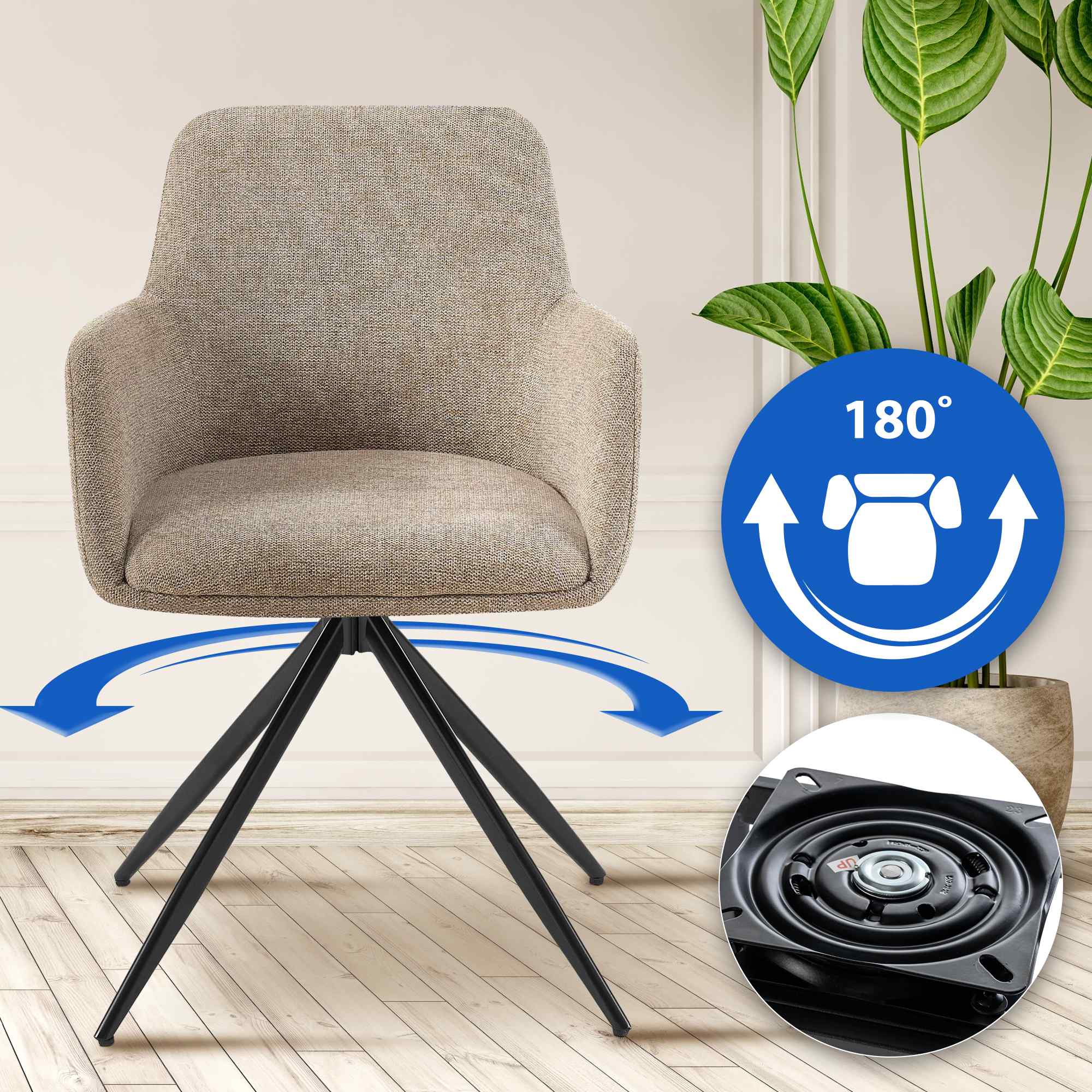 Chaise de salle à manger x1 pivotante rembourrée avec accoudoirs en tissu taupe cadre métal 10_0007173