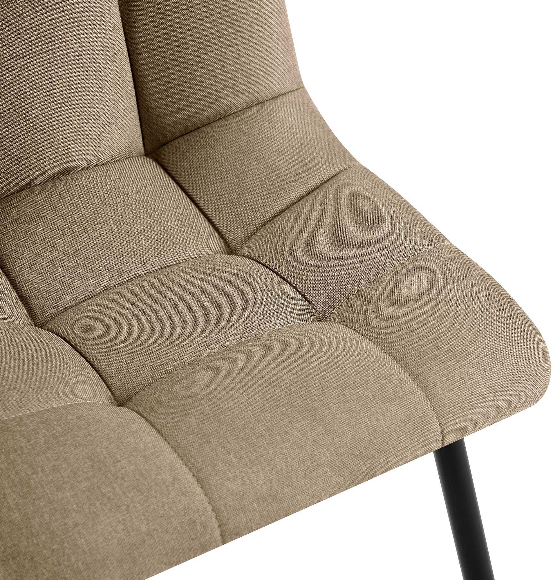 Chaise de salle à manger x1 coutures décoratives carrées en tissu taupe et métal noir 10_0007178