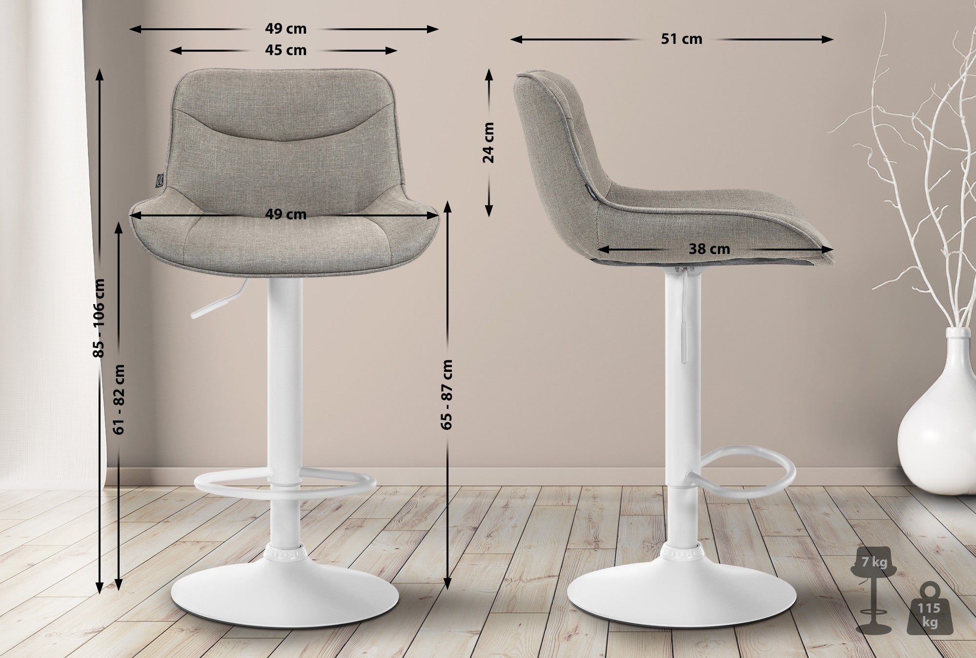 Le tabouret de bar en tissu allie fonctionnalité et design moderne. Réglable en hauteur, il offre une assise rembourrée et une forme ergonomique pour un confort optimal. Pivotant à 360° et réglable en hauteur en continu, il offre des positions d'assise flexibles.