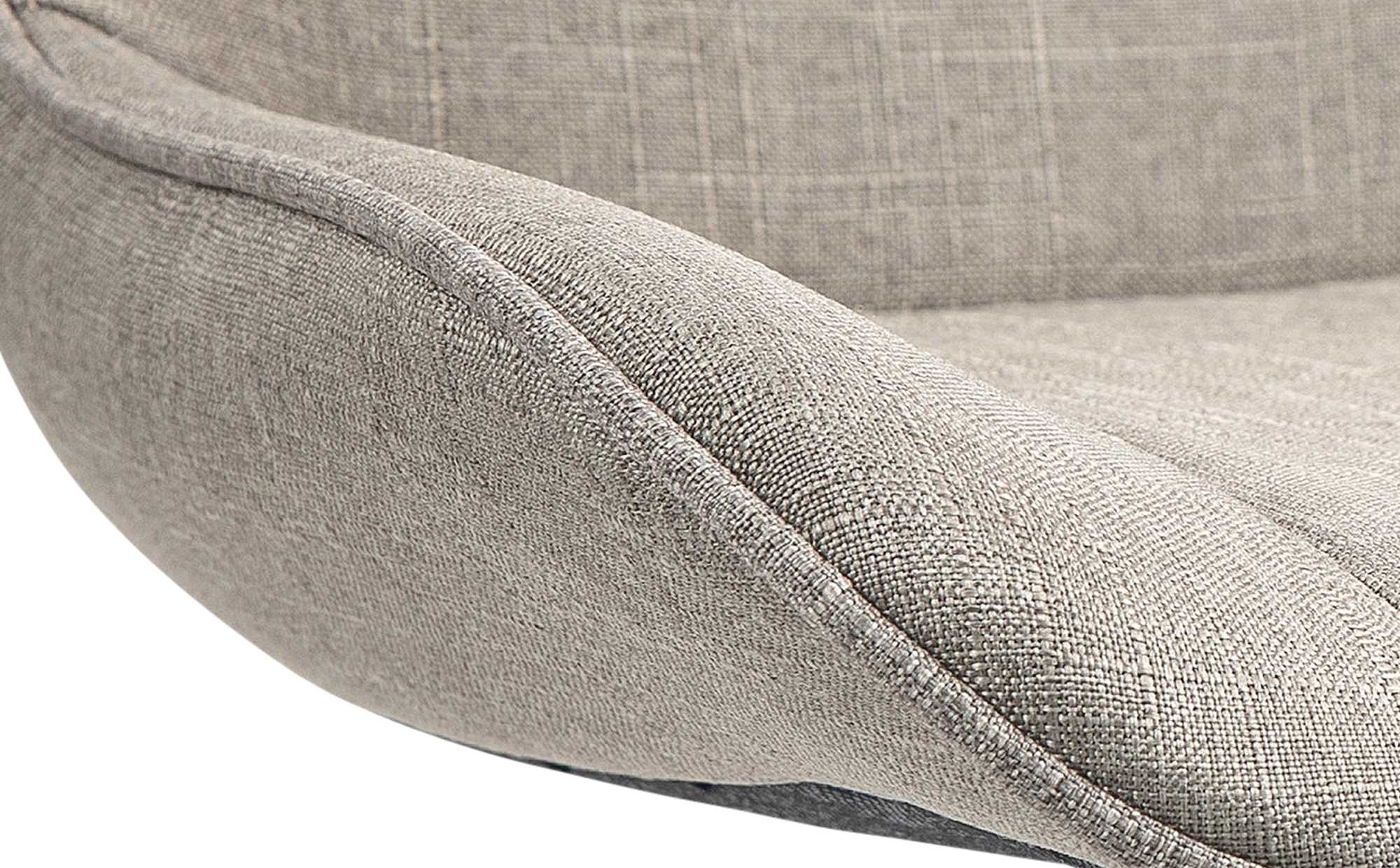 La structure en métal et le piètement en trompette garantissent stabilité et durabilité. Le repose-pieds intégré s'ajuste à la hauteur de l'assise et offre un soutien supplémentaire. Le revêtement en tissu est résistant et offre une assise confortable. Les patins de protection protègent le sol des rayures.