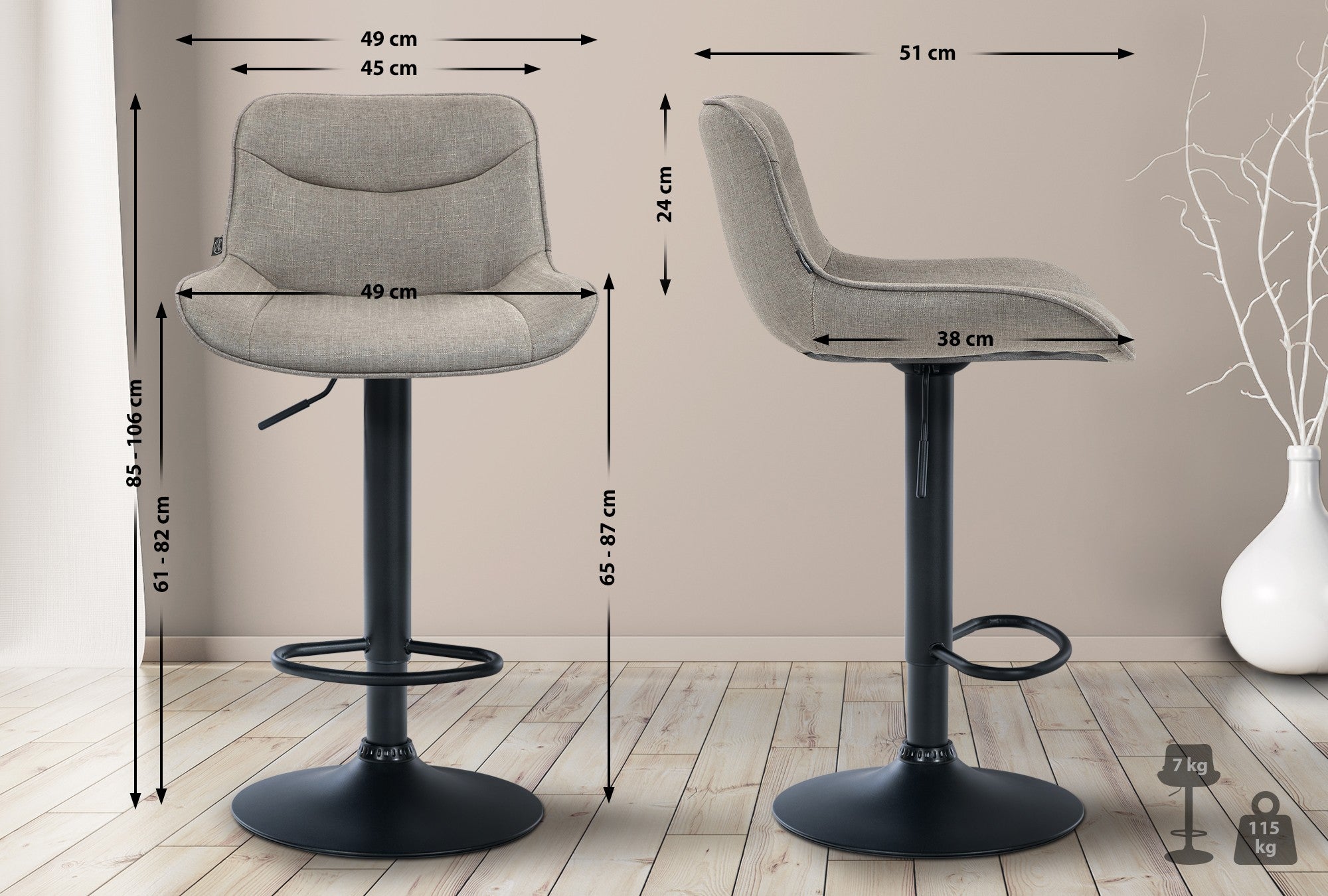 Le tabouret de bar en tissu allie fonctionnalité et design moderne. Réglable en hauteur, il offre une assise rembourrée et une forme ergonomique pour un confort optimal. Pivotant à 360° et réglable en hauteur en continu, il offre des positions d'assise flexibles.