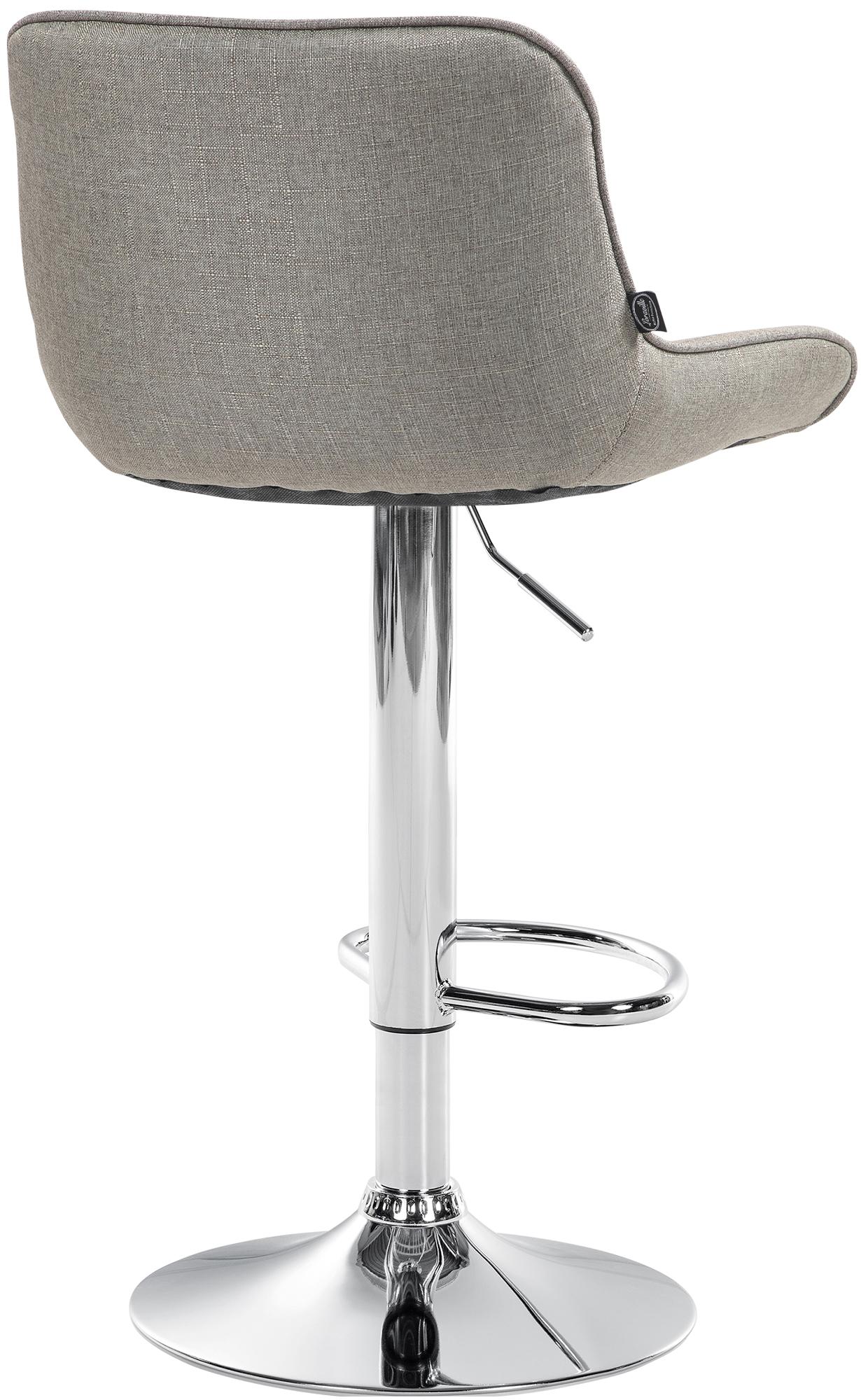 La structure en métal et le piètement en trompette garantissent stabilité et durabilité. Le repose-pieds intégré s'ajuste à la hauteur de l'assise et offre un soutien supplémentaire. Le revêtement en tissu est résistant et offre une assise confortable. Les patins de protection protègent le sol des rayures.