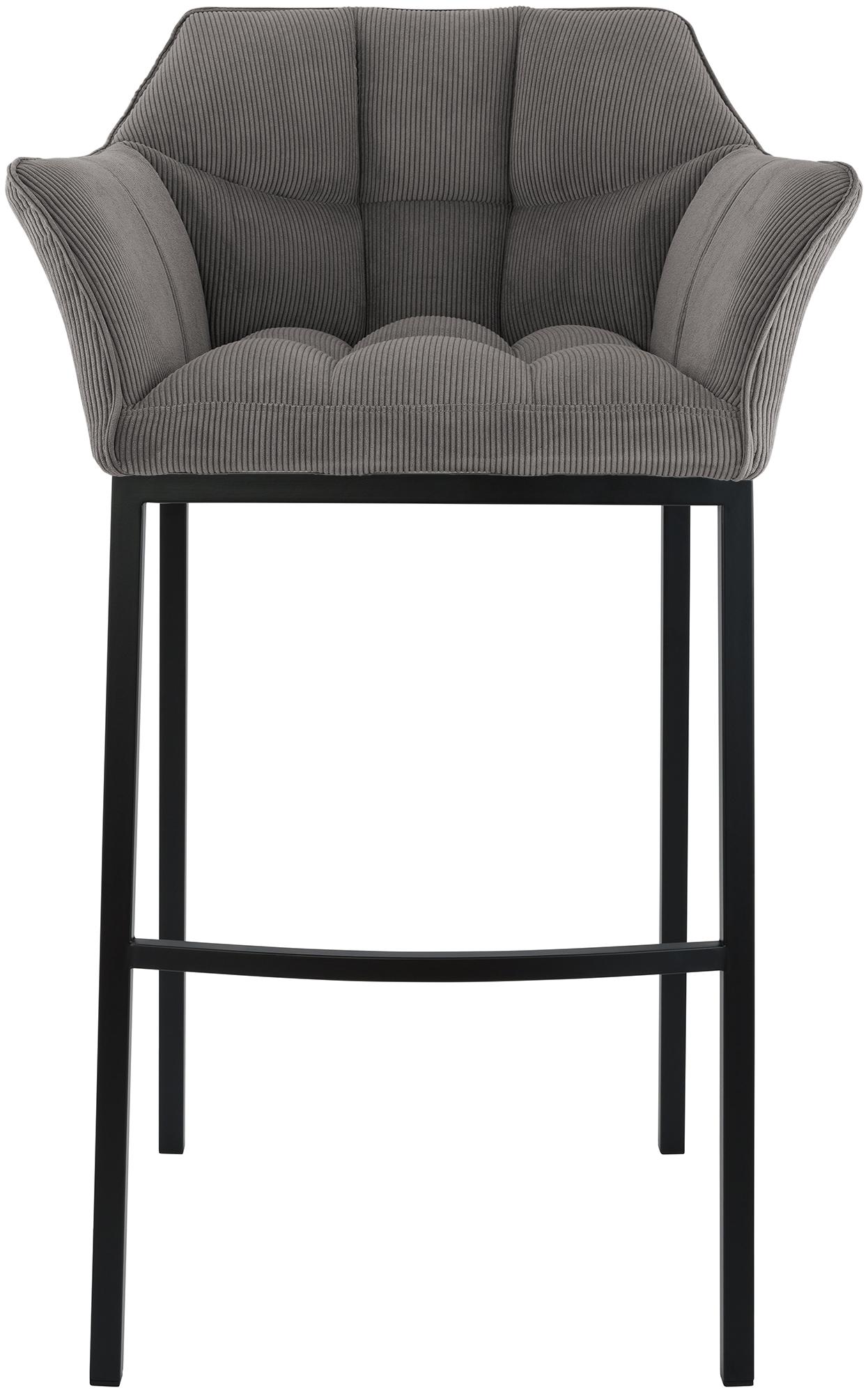Tabouret de bar x1 assise enveloppante capitonnée en velours côtelé taupe avec structure à 4 pieds en métal noir 10_0006285