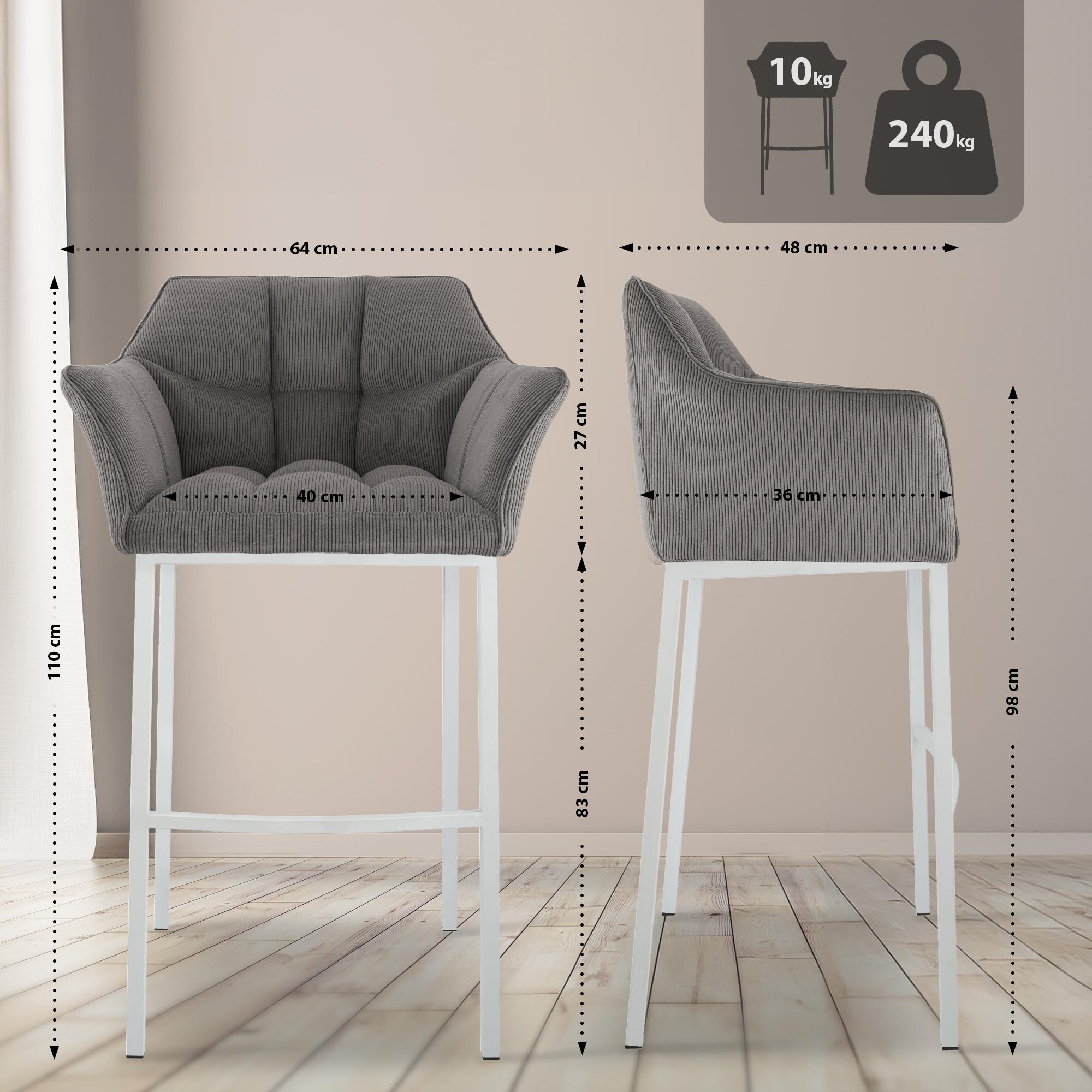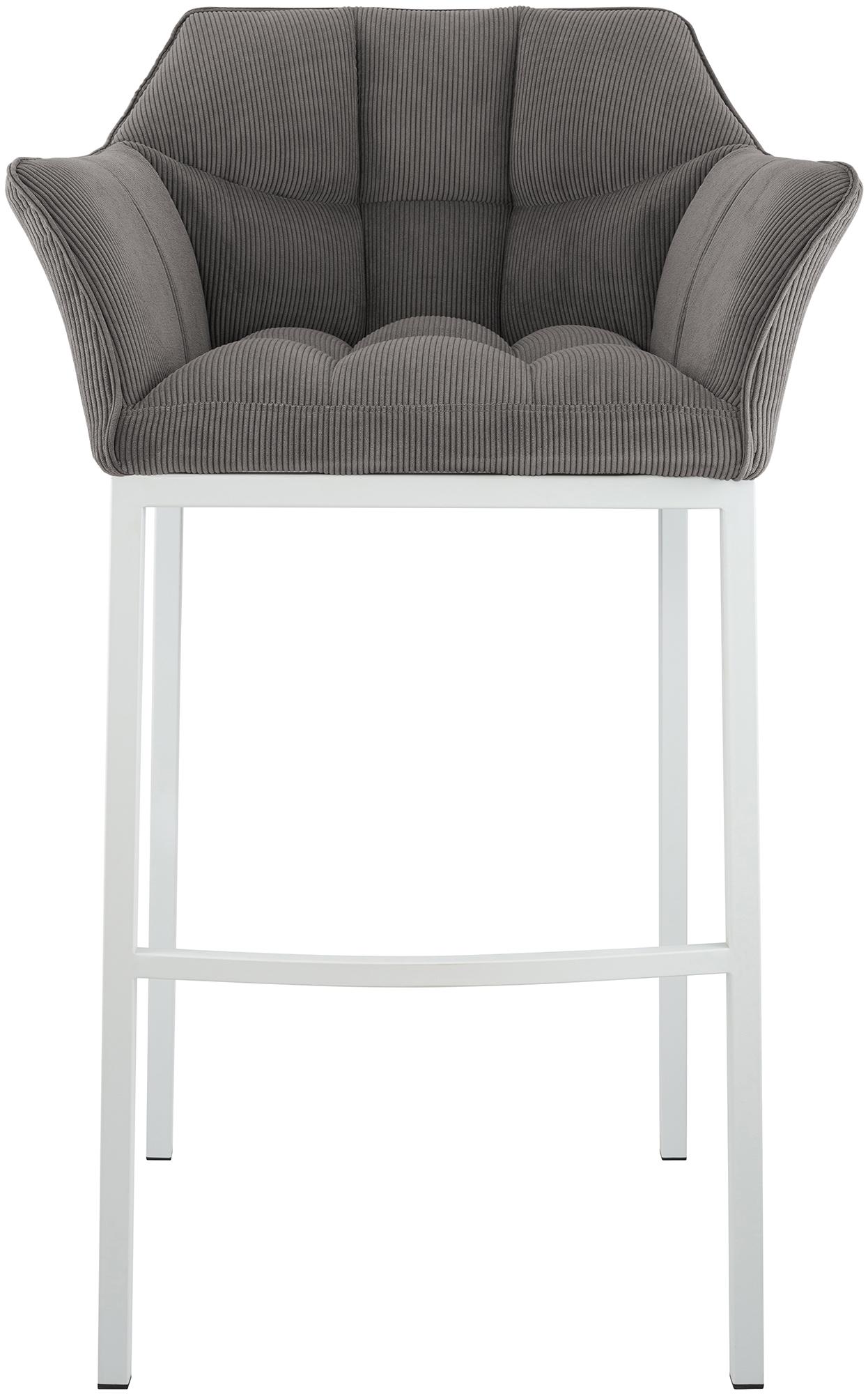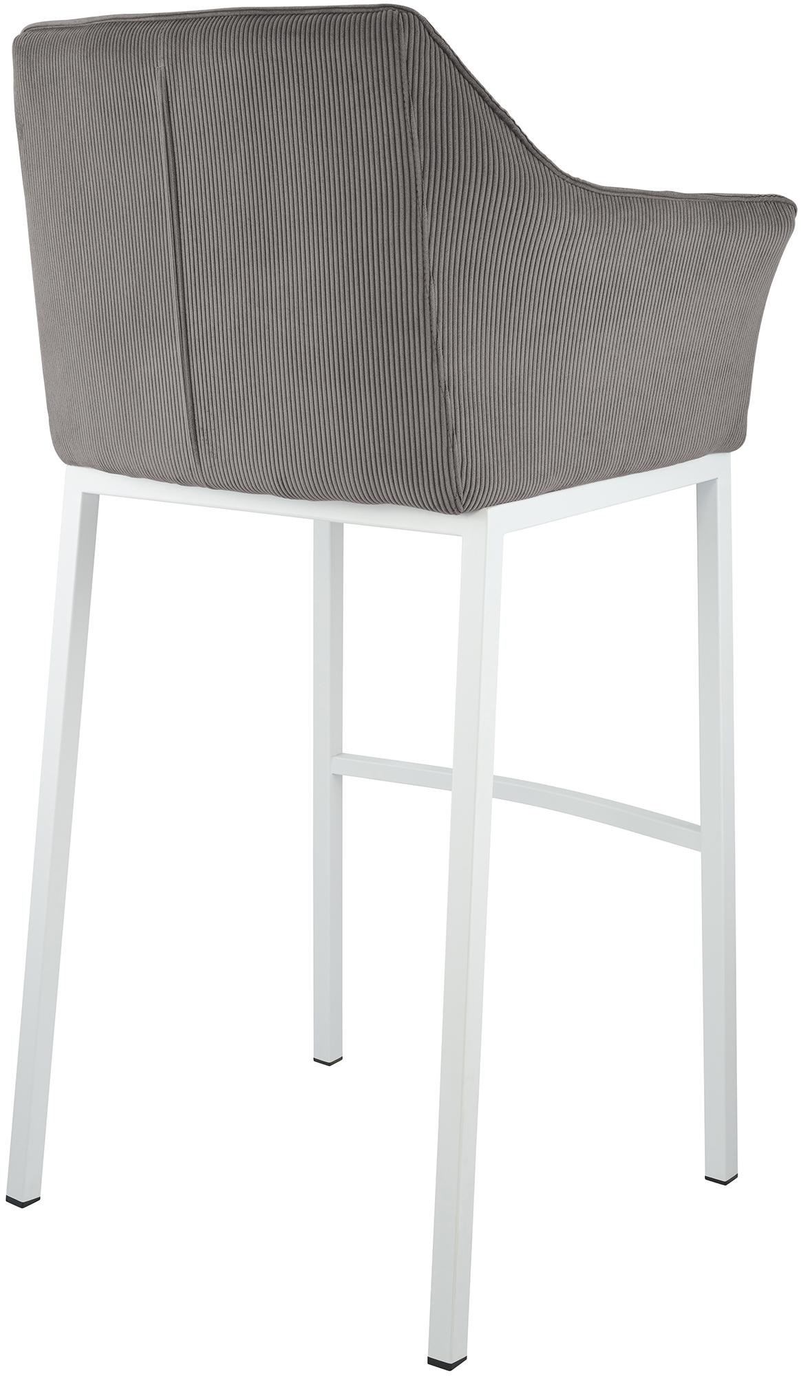 Tabouret de bar x1 assise enveloppante capitonnée en velours côtelé taupe avec structure à 4 pieds en métal blanc 10_0006288