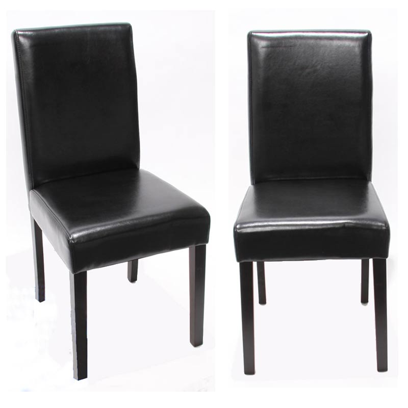Lot de 2 chaises de salle à manger cuisine en cuir noir pieds en bois foncés