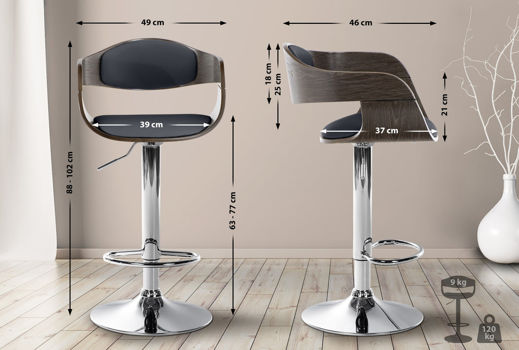 Tabouret de bar x1 design scandinave en PVC noir et structure en bois couleur gris 10_0005040