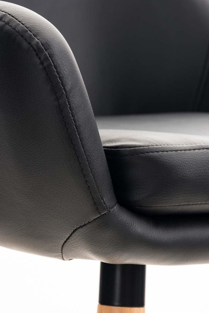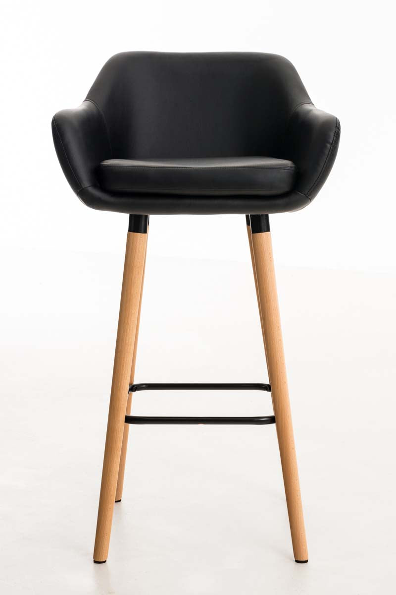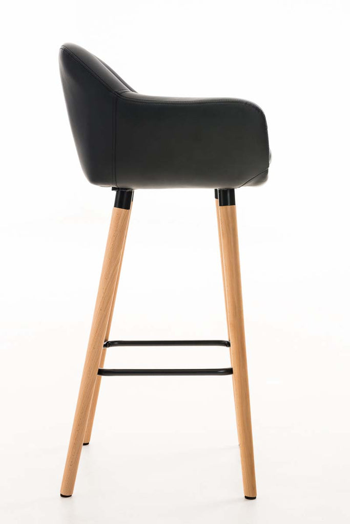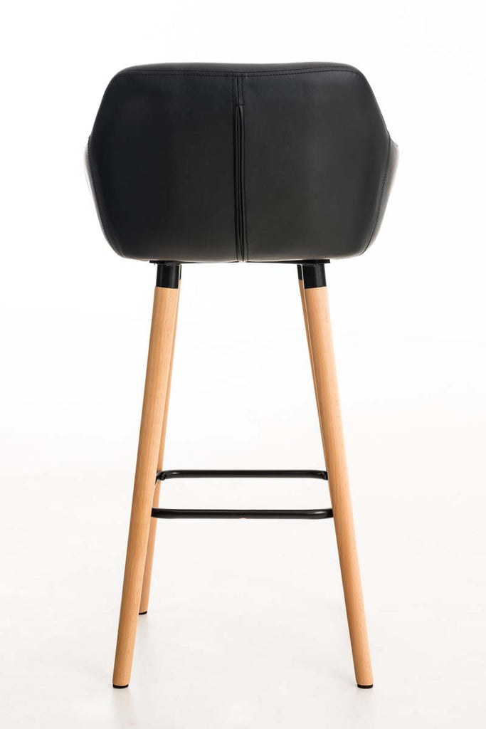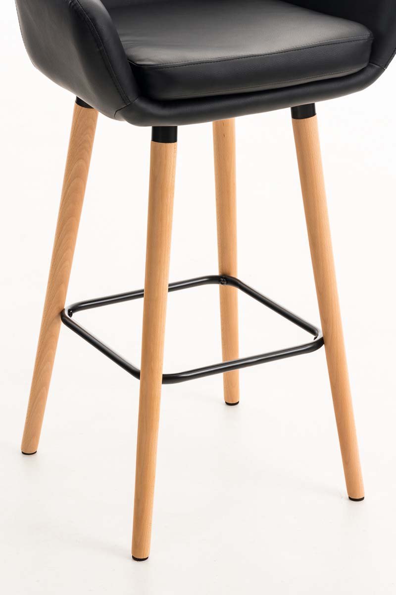 Tabouret de bar lounge x1 design scandinave assise en PVC noir pieds en bois repose-pieds en métal 10_0004908
