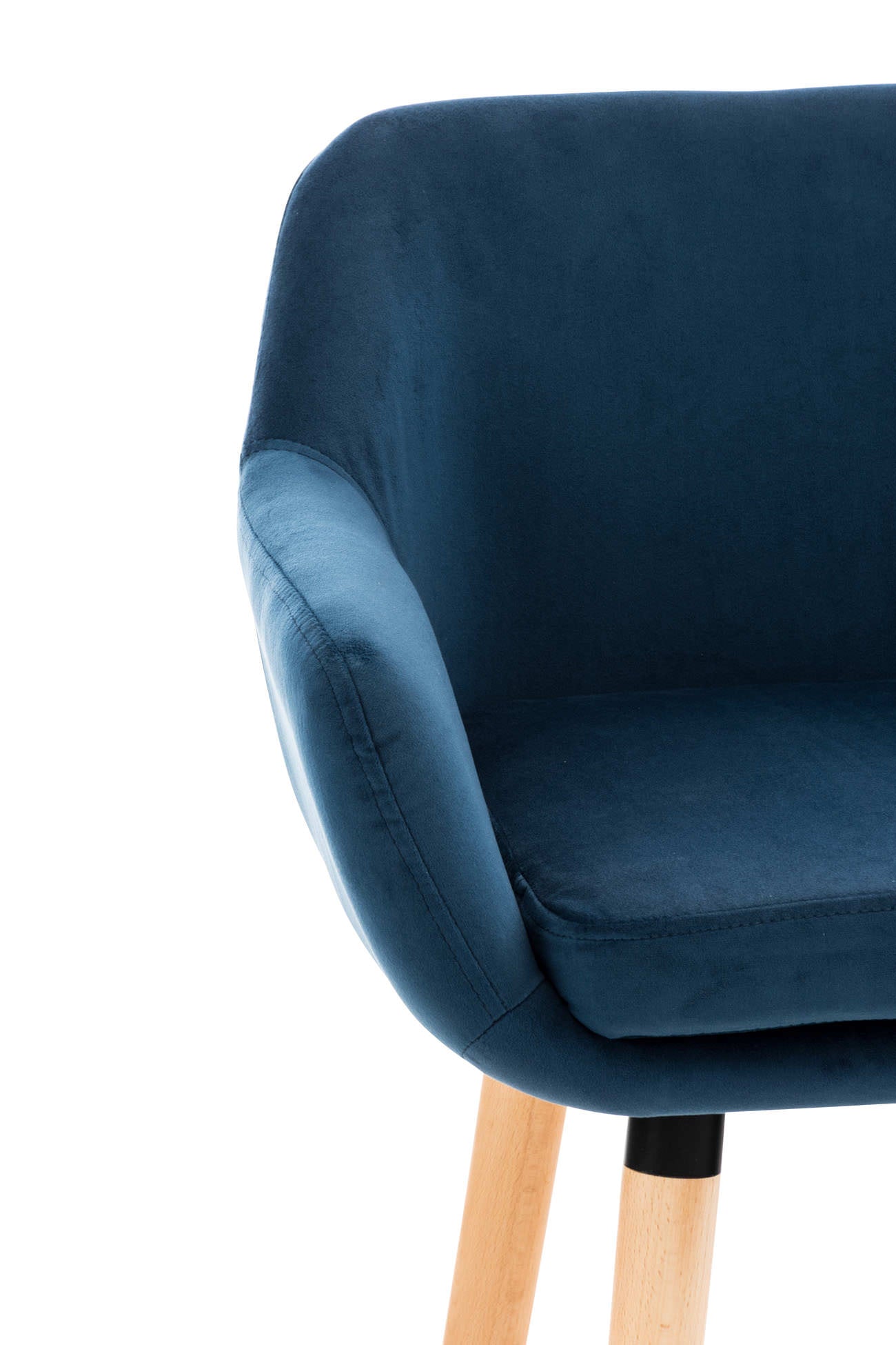 Tabouret de bar lounge x1 design scandinave assise en velours bleu pieds en bois repose-pieds en métal 10_0004913