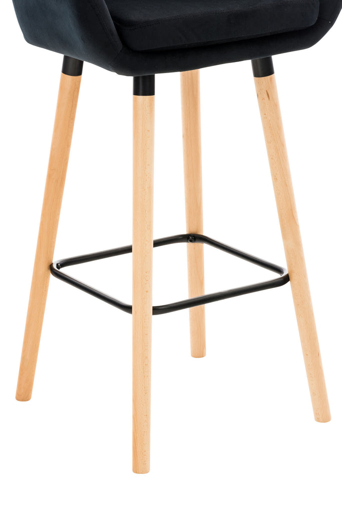 Tabouret de bar lounge x1 design scandinave assise en velours noir pieds en bois repose-pieds en métal 10_0004914