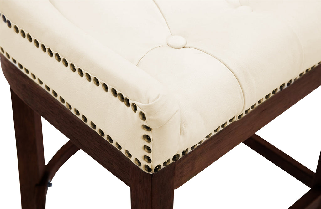 Tabouret de bar x1 assise en cuir véritable crème piètement en bois (H 109 cm) 10_0005056