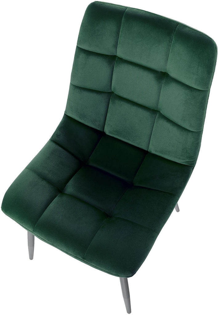 Chaise de salle à manger x1 coutures décoratives carrées en tissu velours vert et métal noir 10_0002129