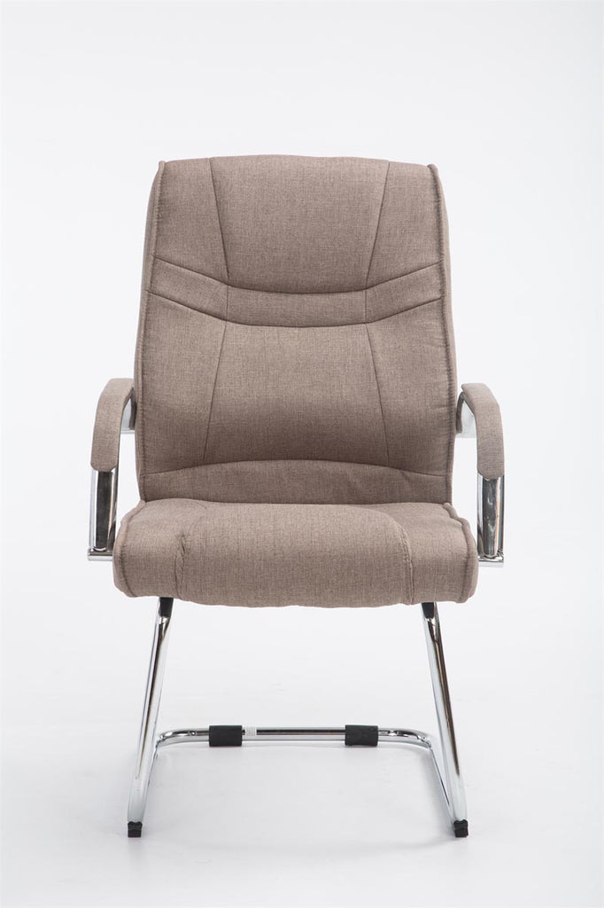 Fauteuil de bureau sans roulettes accoudoirs chaise visiteur charge maximale 180 kg en tissu taupe cadre en métal BUR10722