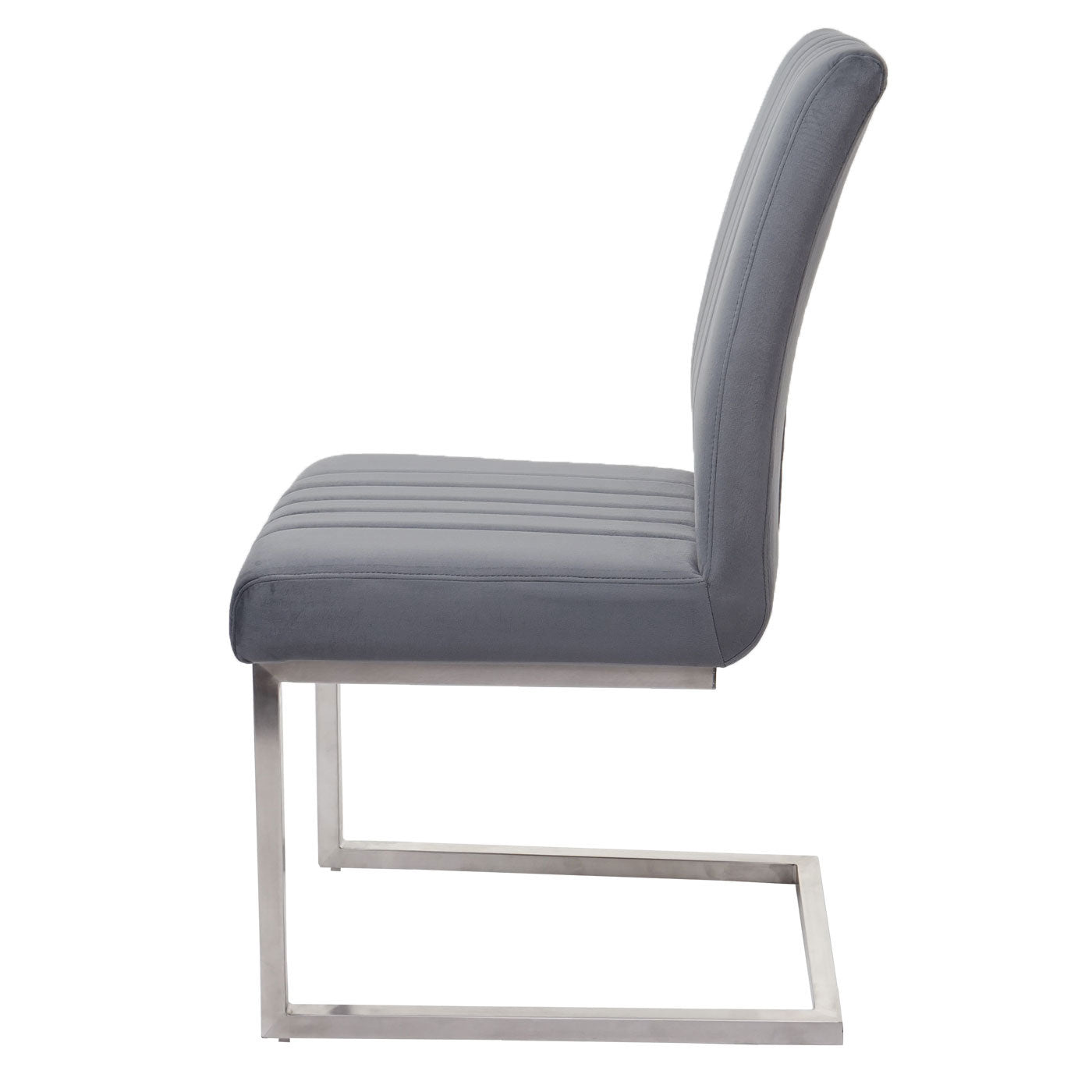 Lot de 2 chaises de salle à manger en tissu velours gris foncé et acier inoxydable brossé 04_0007292