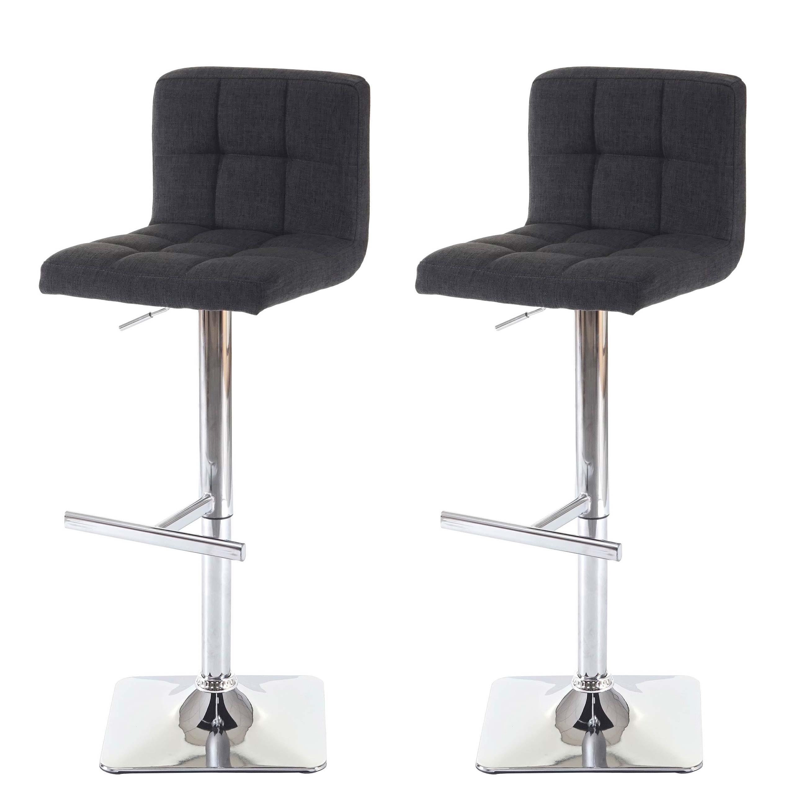 Lot de 2 tabourets de bar chaises hautes rotatif avec dossier en tissu / textile gris foncé piètement chromé 04_0000163