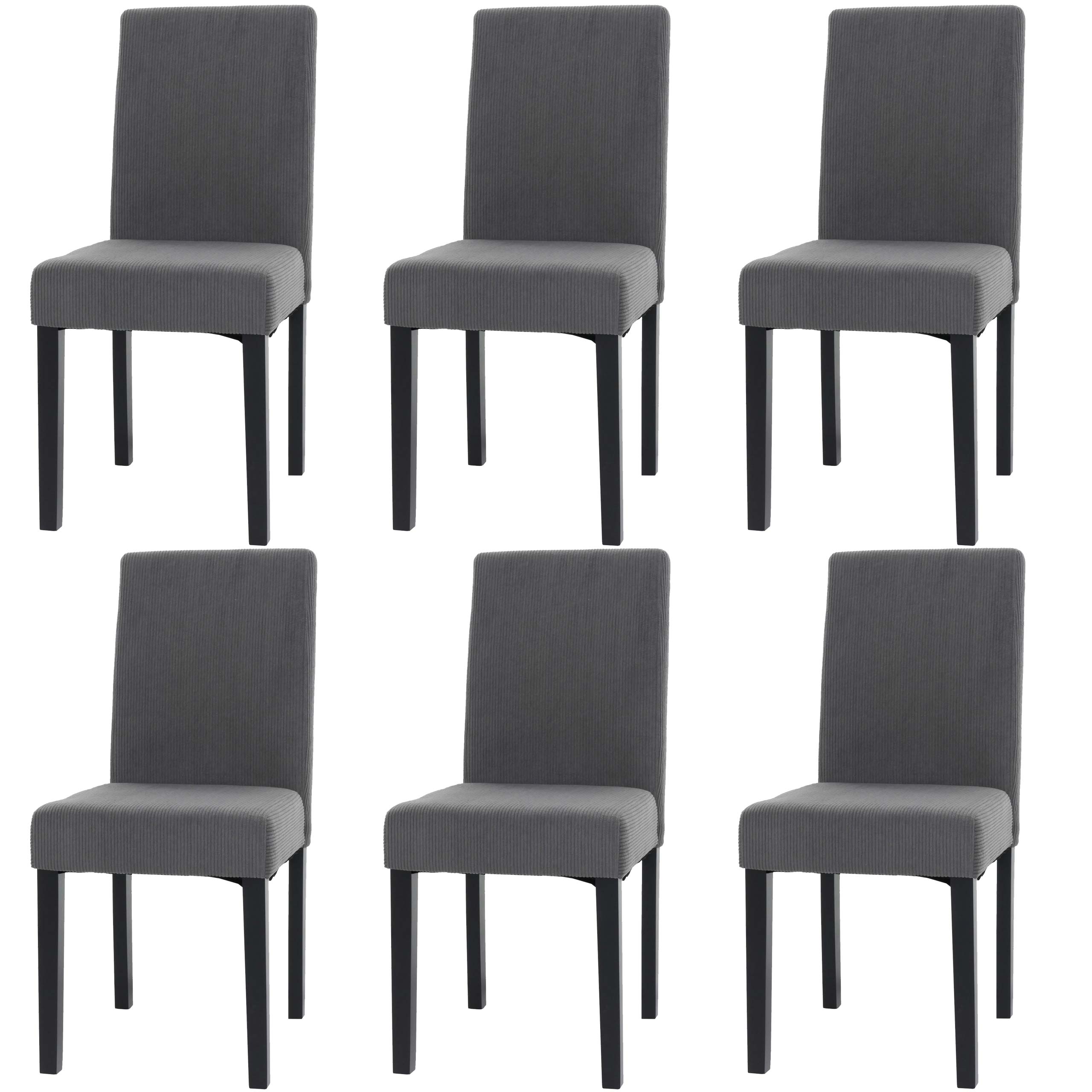 Lot de 6 chaises de salle à manger dossier haut en tissu velours côtelé gris foncé pieds foncés 04_0007642