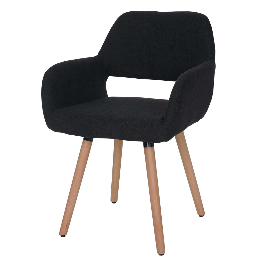 Chaise de salle à manger bureau visiteur sans roulette design rétro en tissu noir pied en bois clair 04_0002148