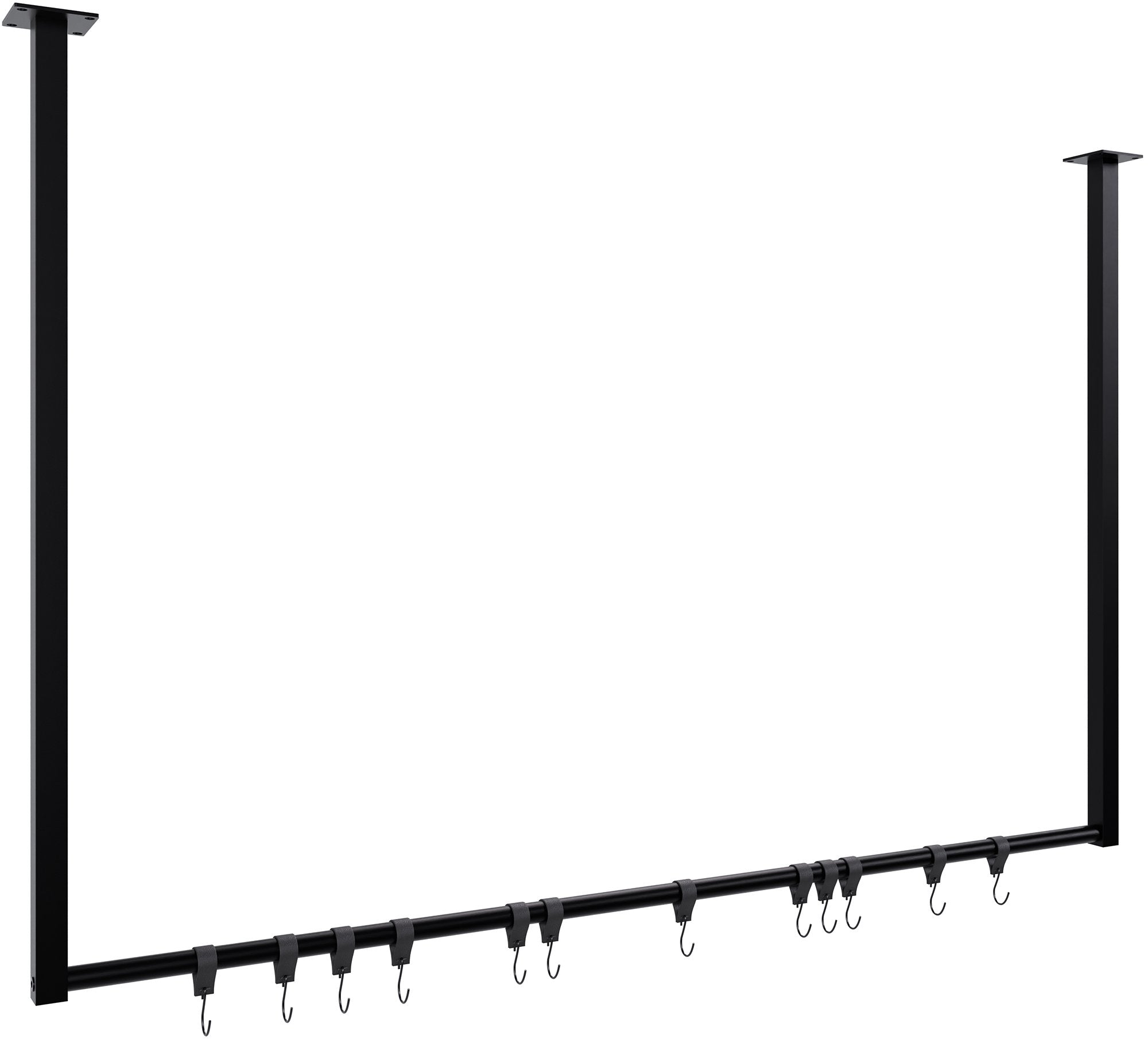 Sa particularité réside dans sa fixation au plafond, qui offre de nombreuses possibilités de combinaison. Par exemple, le support peut être combiné avec une commode, un buffet ou un meuble à chaussures. Offrant suffisamment d'espace pour les vestes, les chemises et les chemisiers, cette tringle ouverte permet de ranger vos vêtements sans les froisser et de les garder toujours à portée de main.