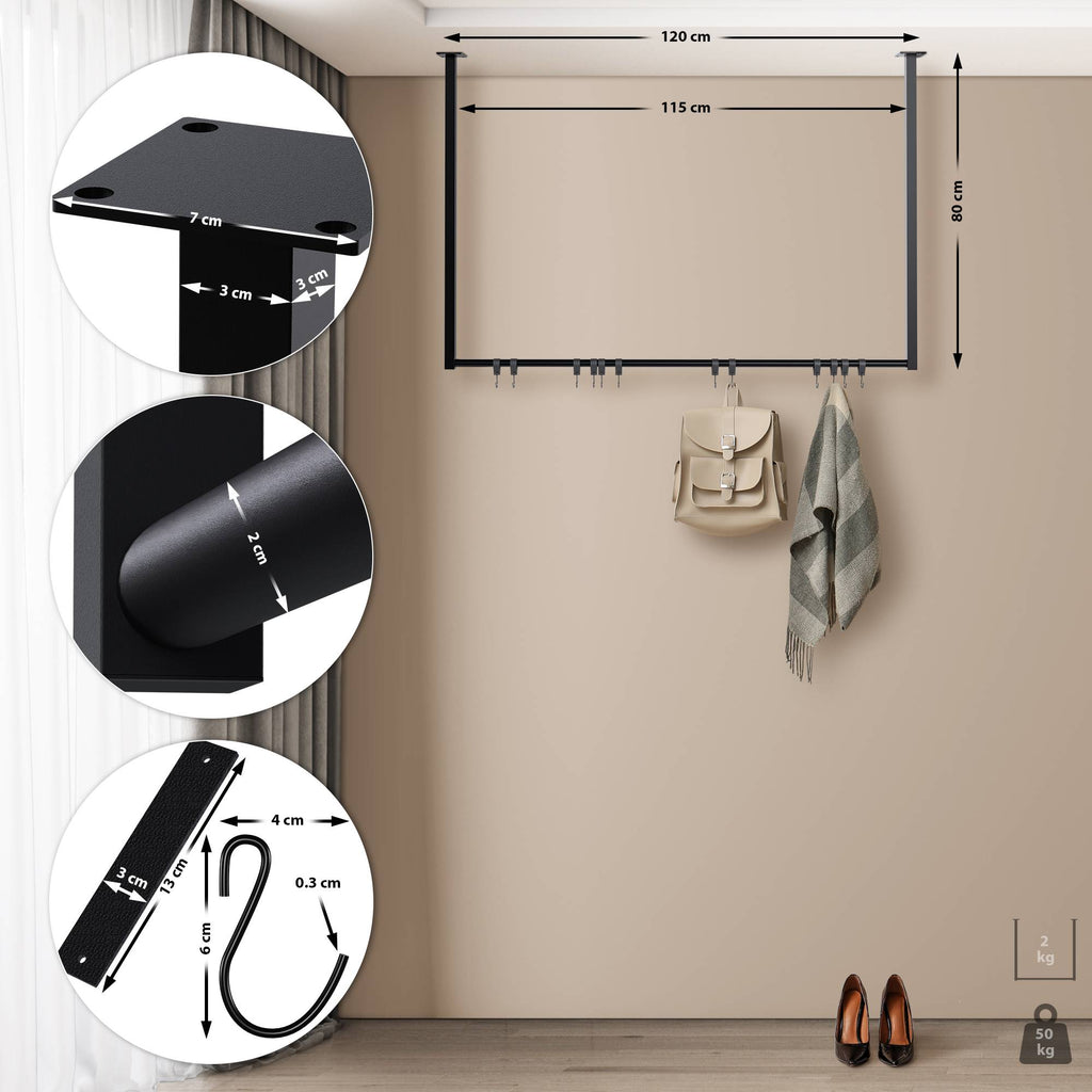 Tringle à vêtements suspendue porte-manteau avec 12 patères 120x80 cm acier thermolaqué noir 10_0009044