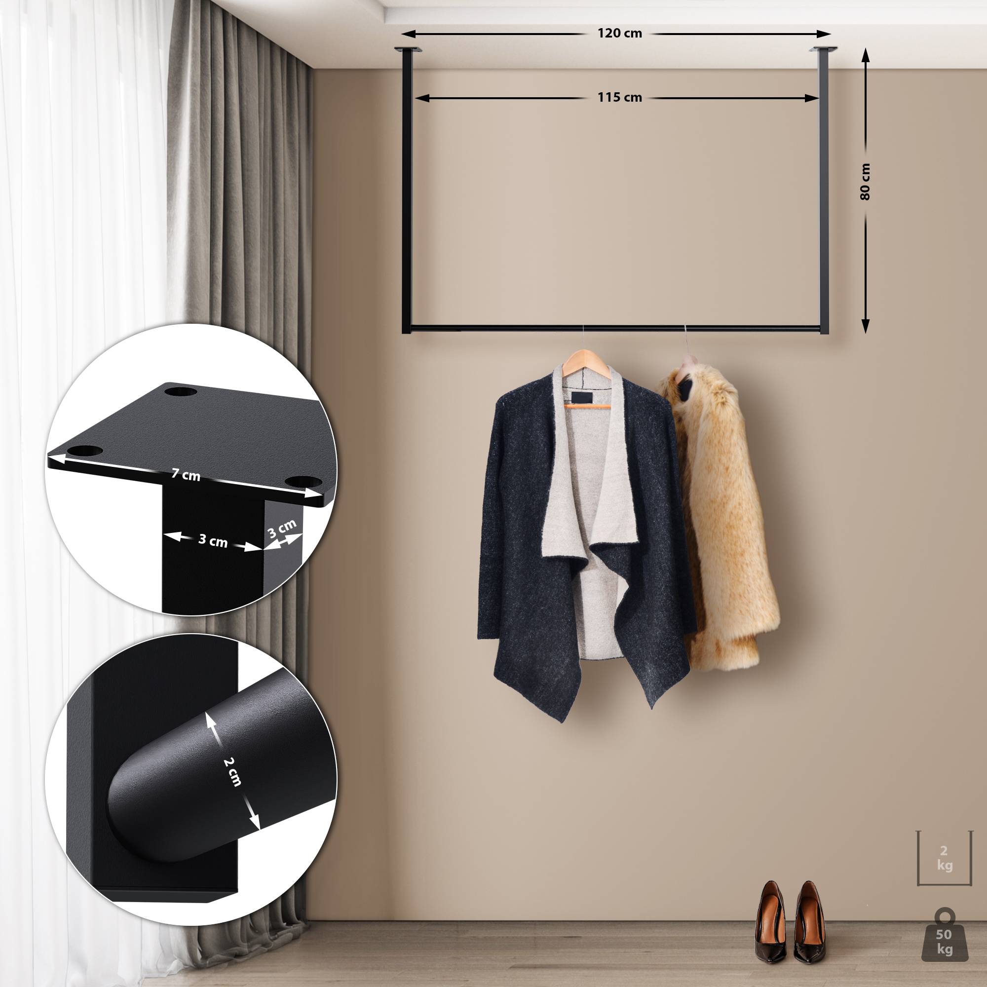 Tringle à vêtements suspendue porte-manteau 120x80 cm acier thermolaqué noir 10_0009043