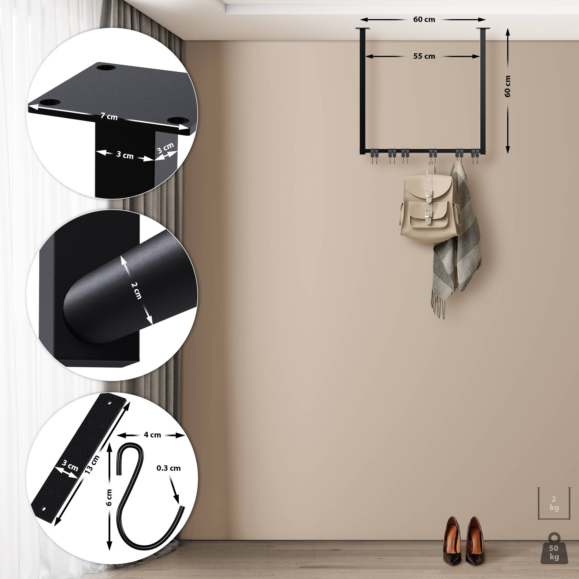 Tringle à vêtements suspendue porte-manteau avec 12 patères 60x60 cm acier thermolaqué noir 10_0009015