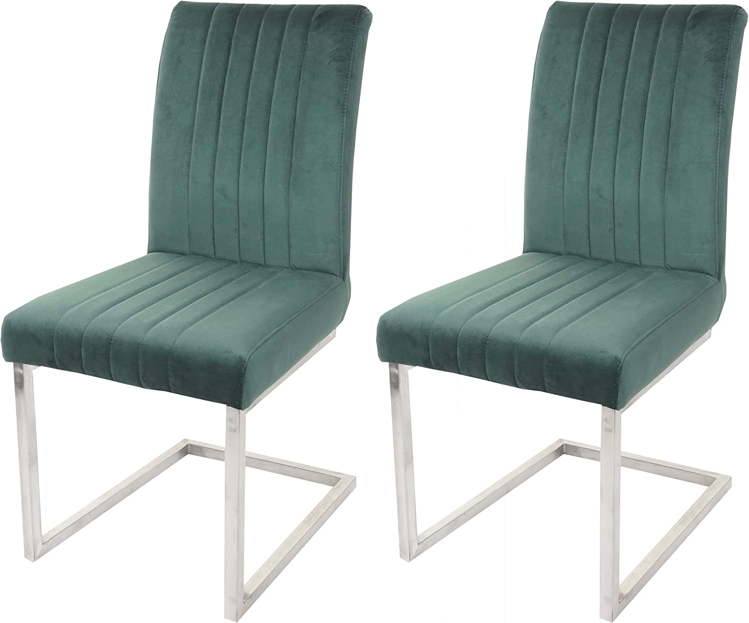 Lot de 2 chaises de salle à manger chaise de conférence en acier inoxydable brossé velours vert