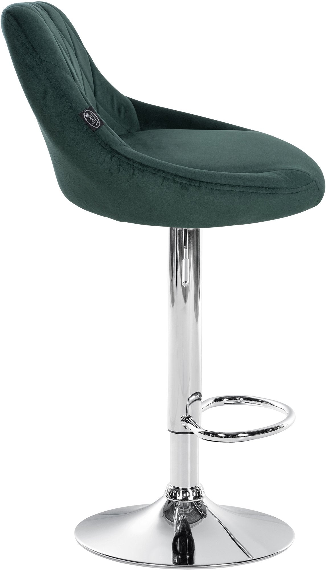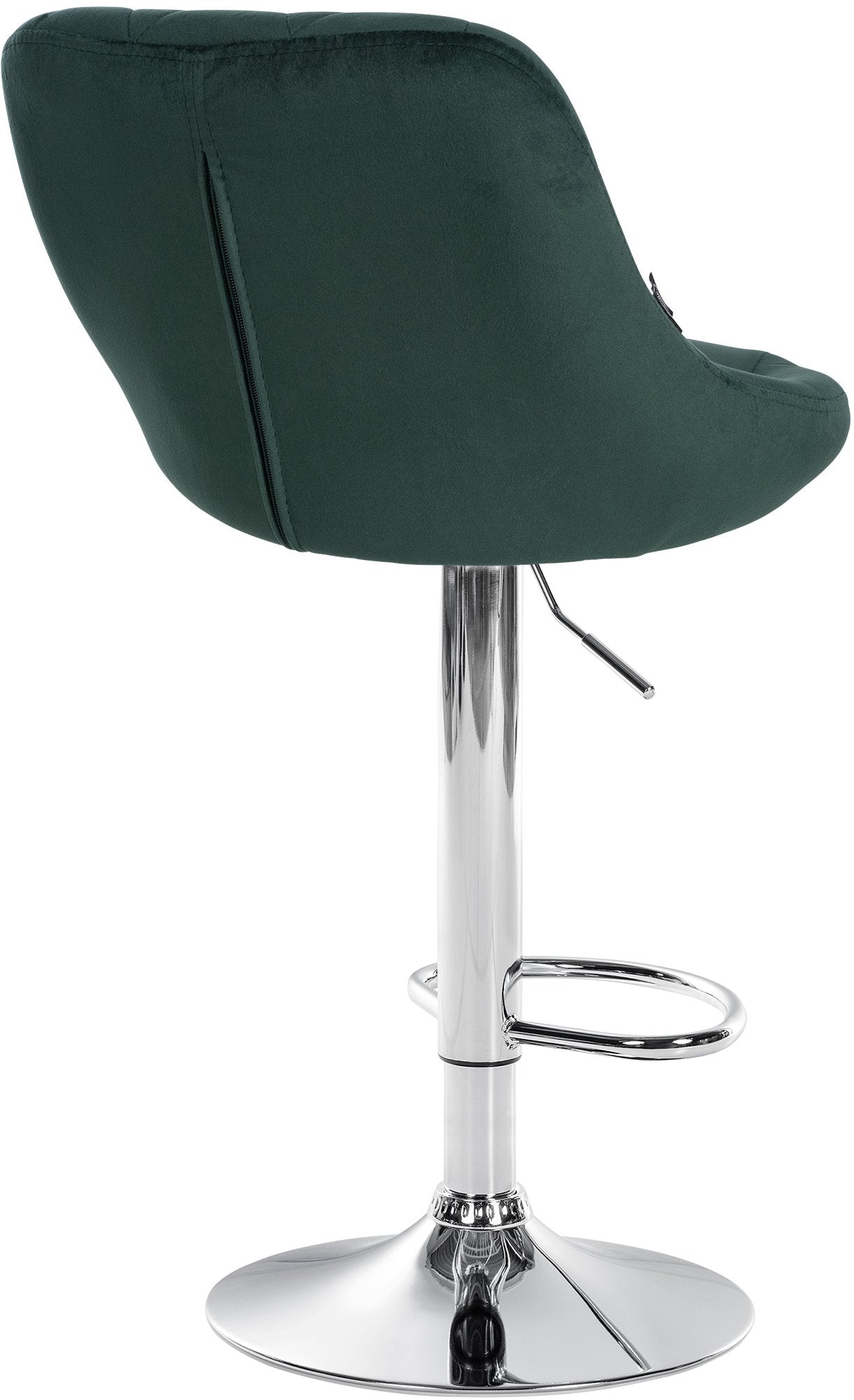 Tabouret de bar en velours vert coutures décoratives pivotant support métal chromé