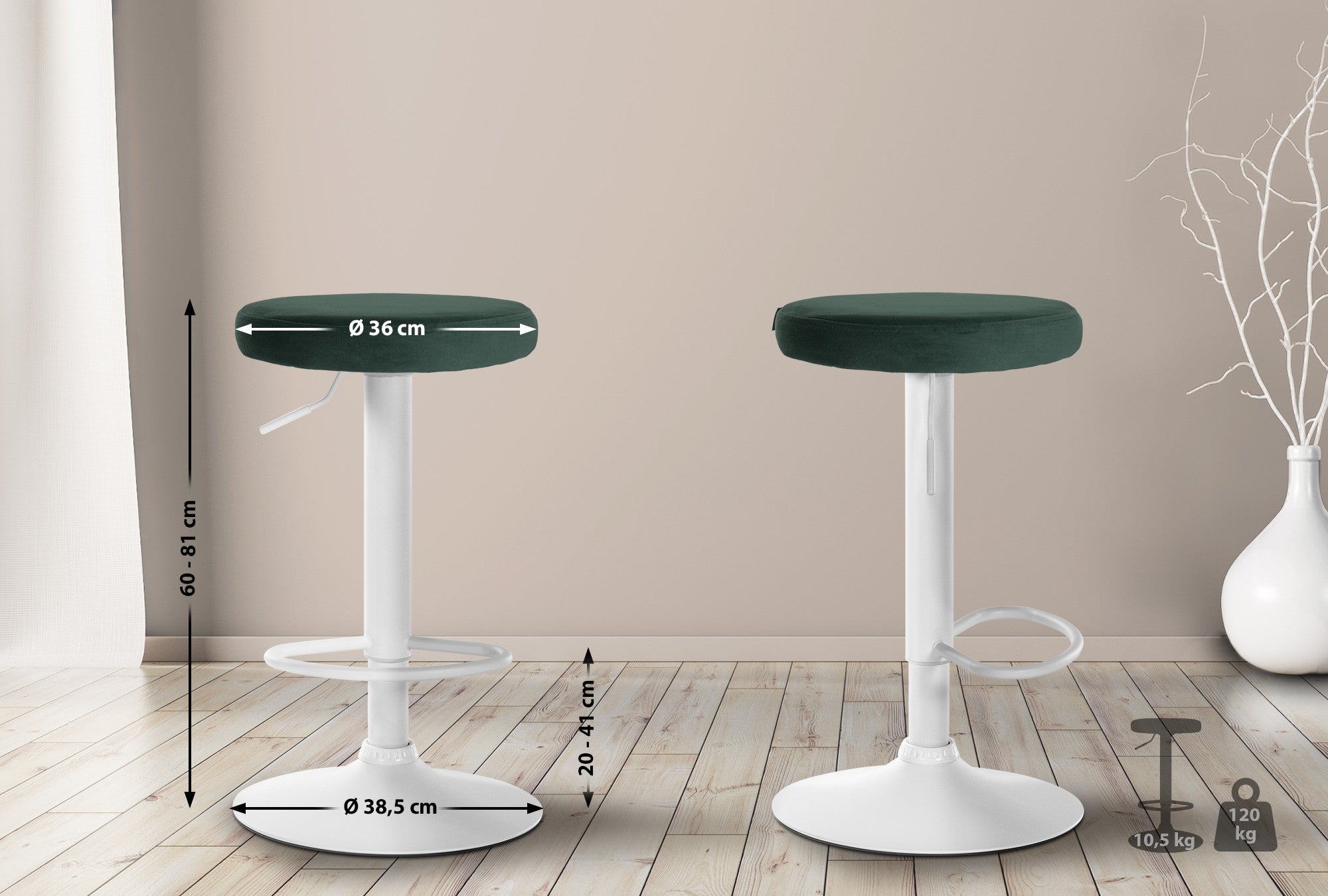 Tabouret de bar x1 design simple hauteur réglable revêtement en velours vert pieds en métal blanc 10_0005358