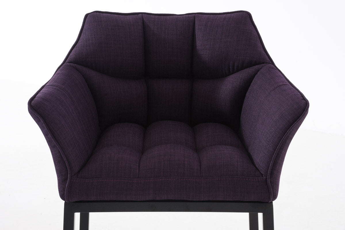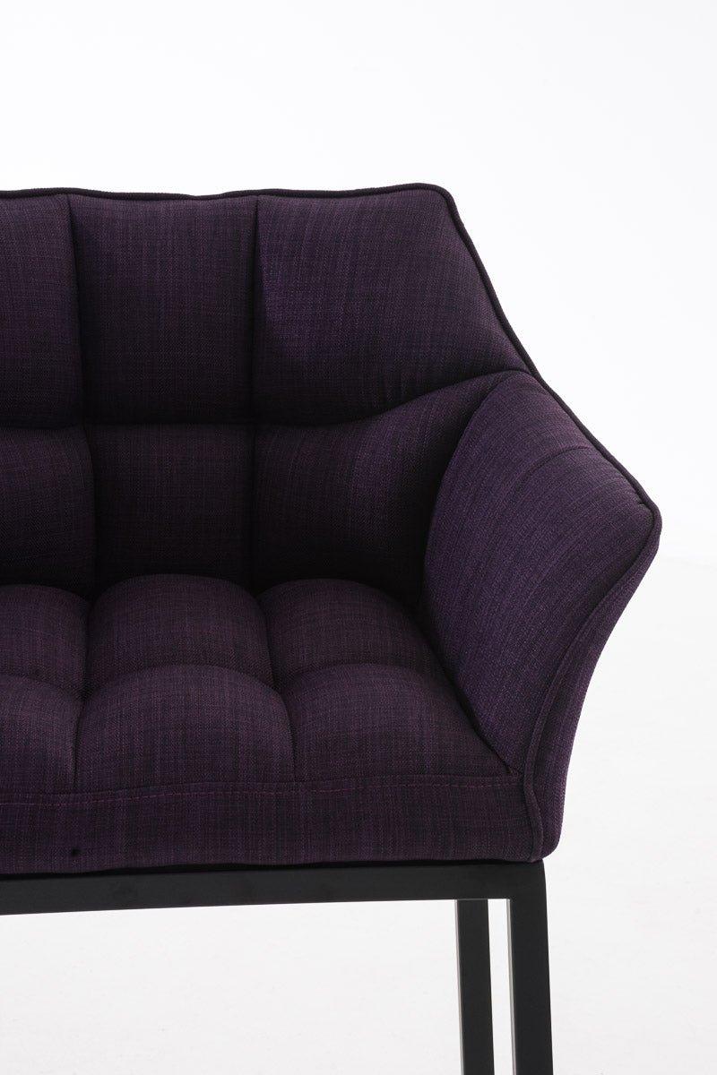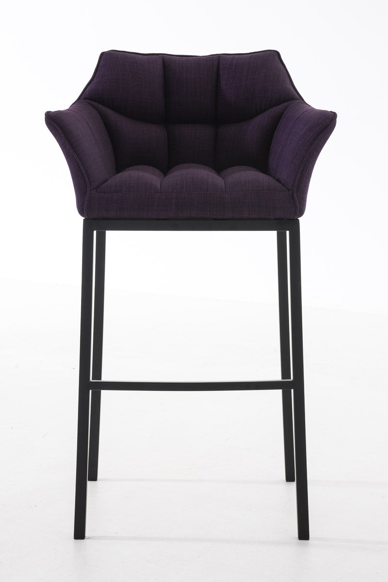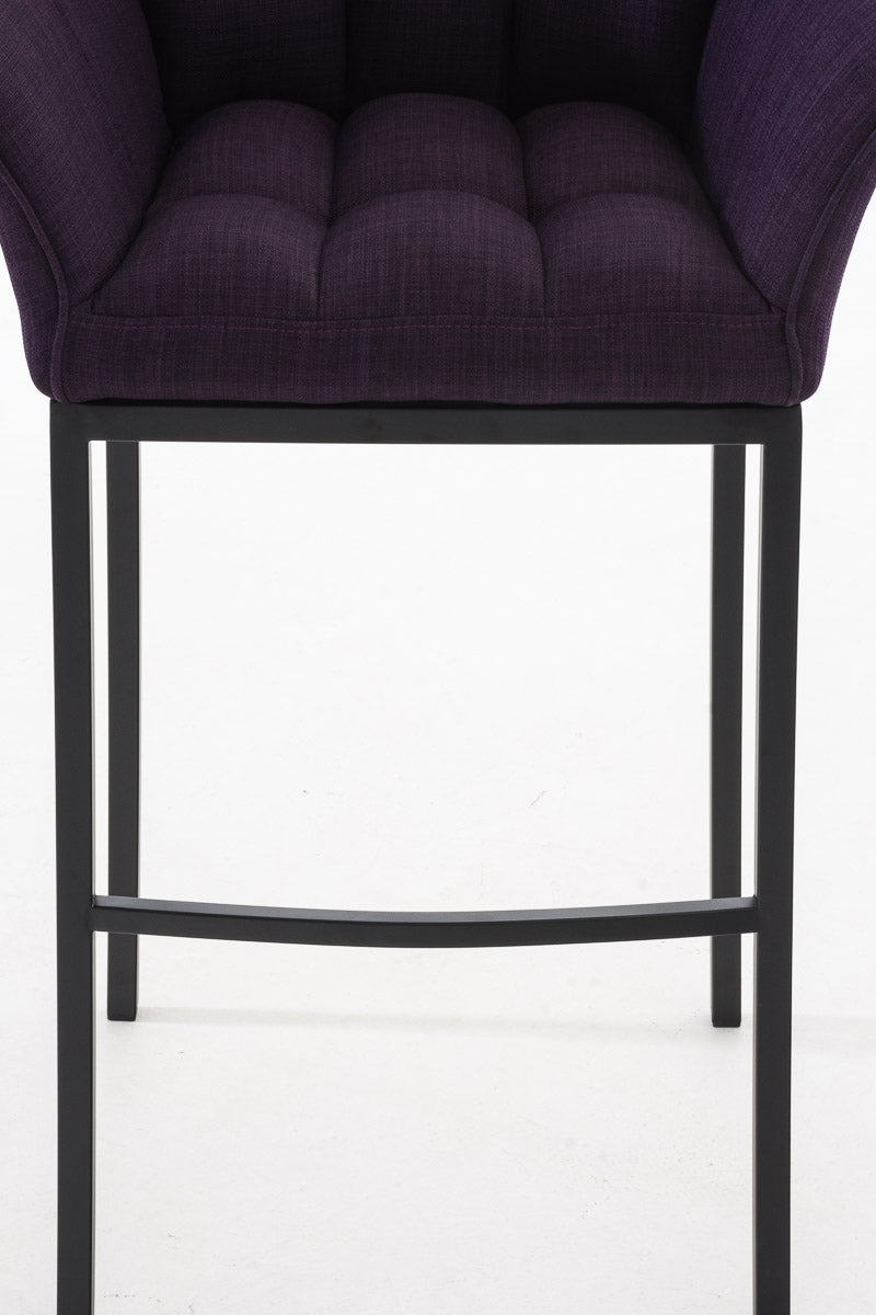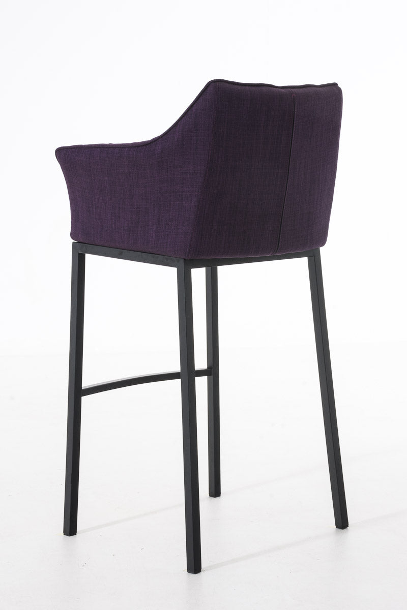 Tabouret de bar chaise haute de comptoir couture carrées assise en tissu violet 4 pieds stables en métal noir 10_0001289