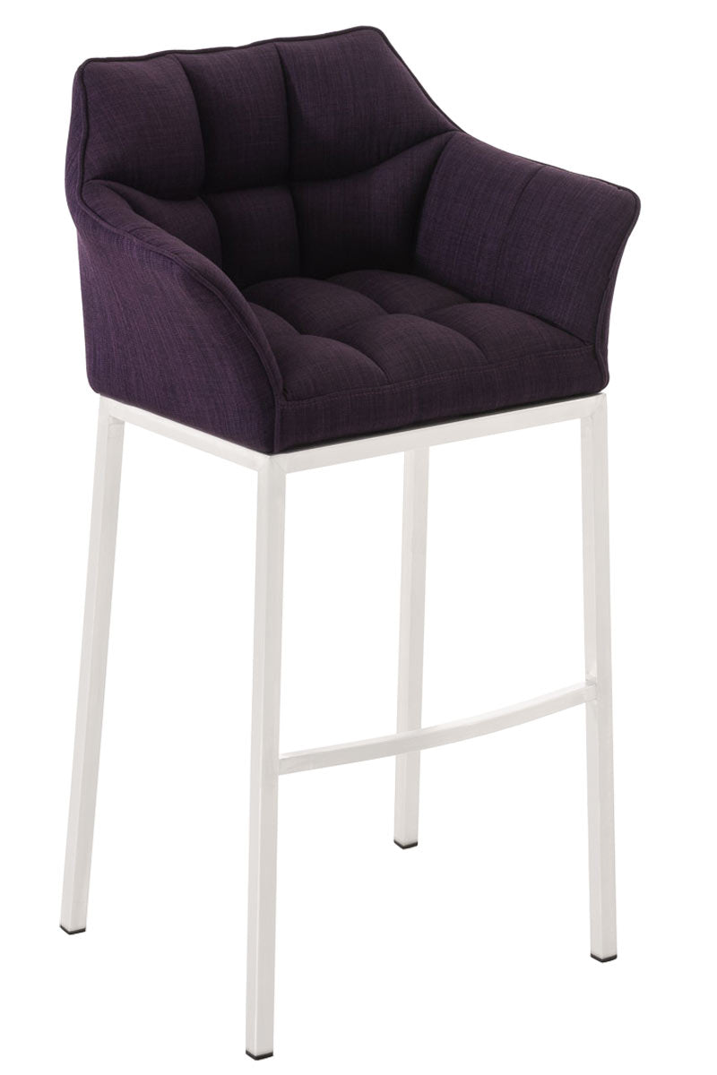Tabouret de bar chaise haute de comptoir couture carrées assise en tissu violet 4 pieds stables en métal blanc 10_0001293