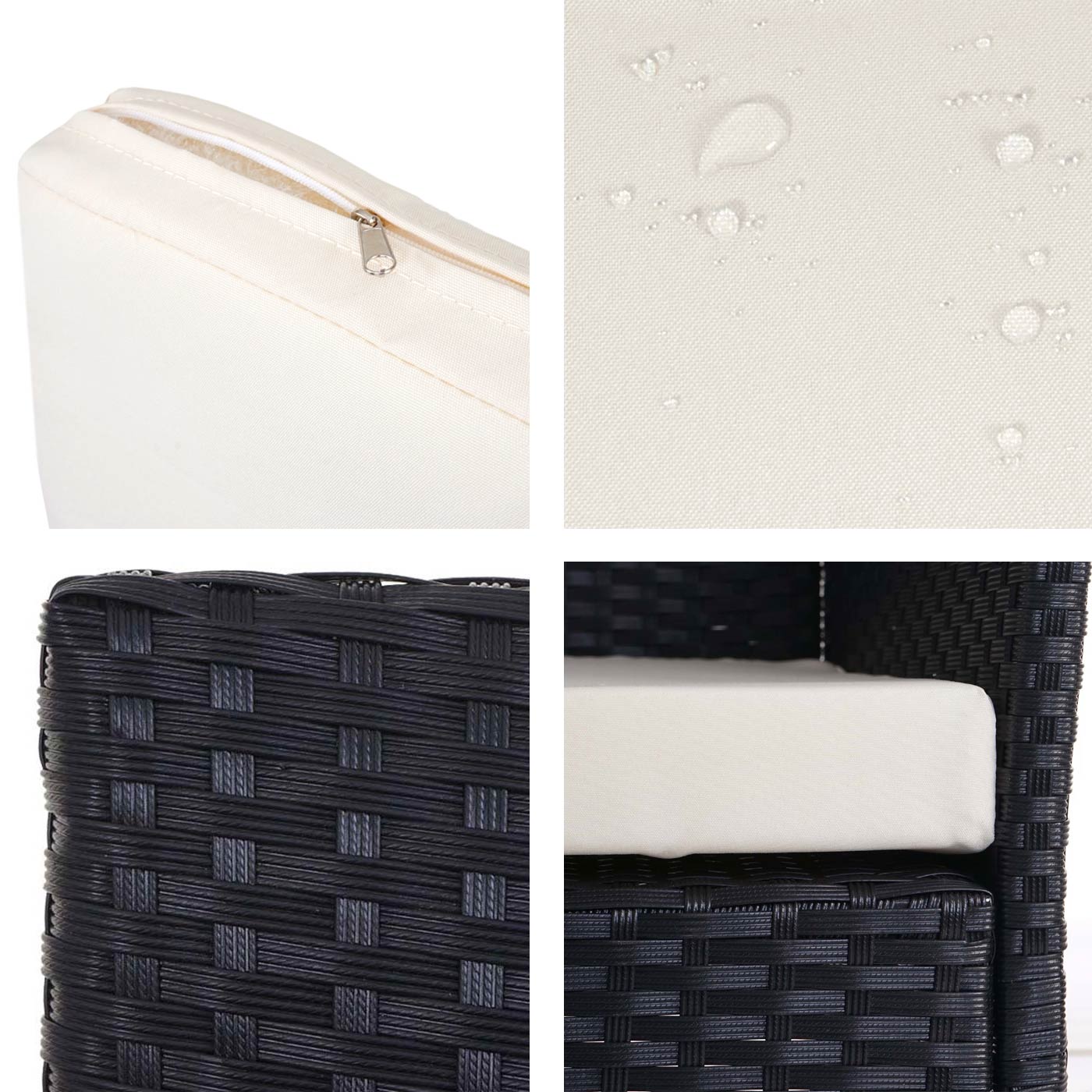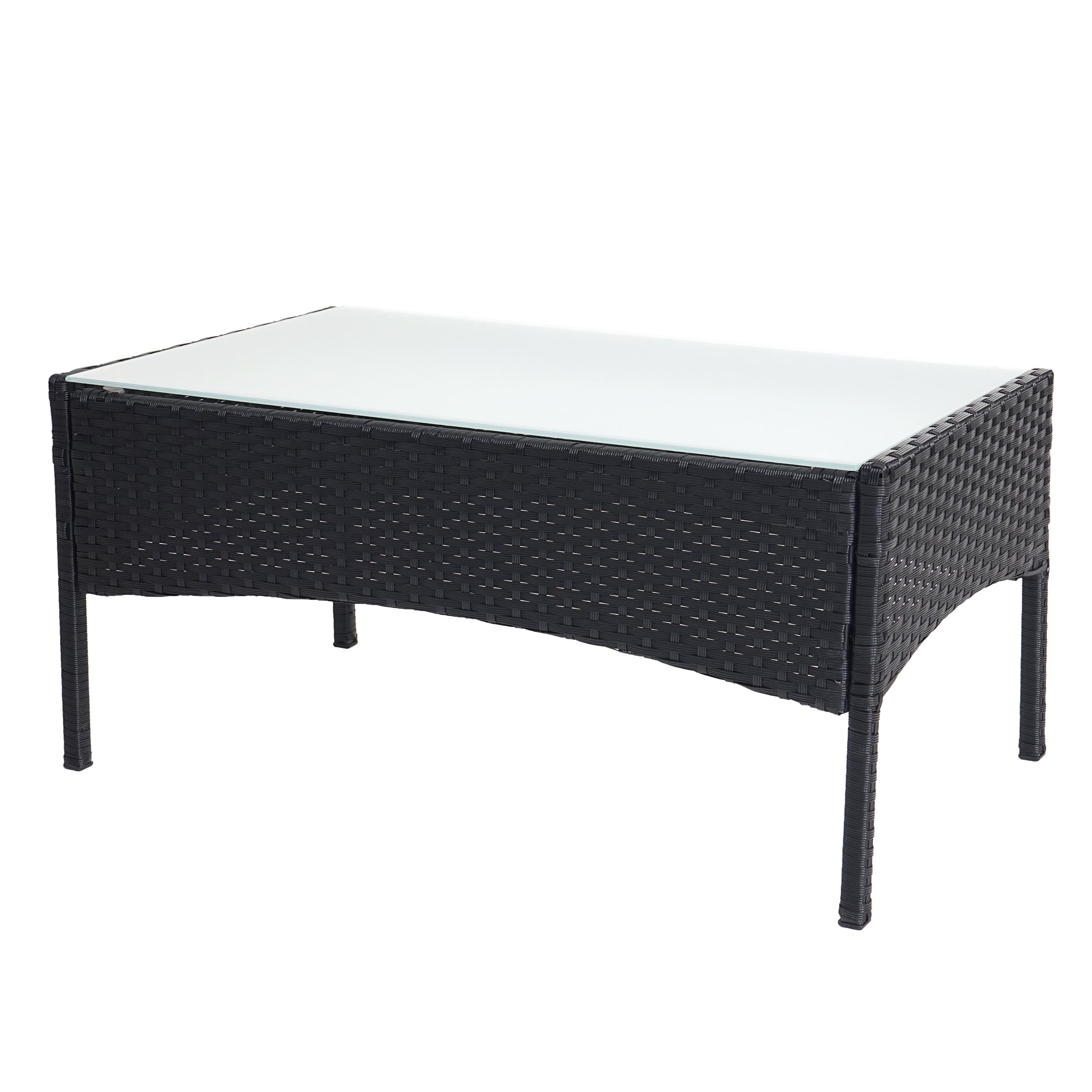 - Contenu de la livraison : 2x fauteuils, 2x banc, coussins d'assise, 1x table avec plateau en verre