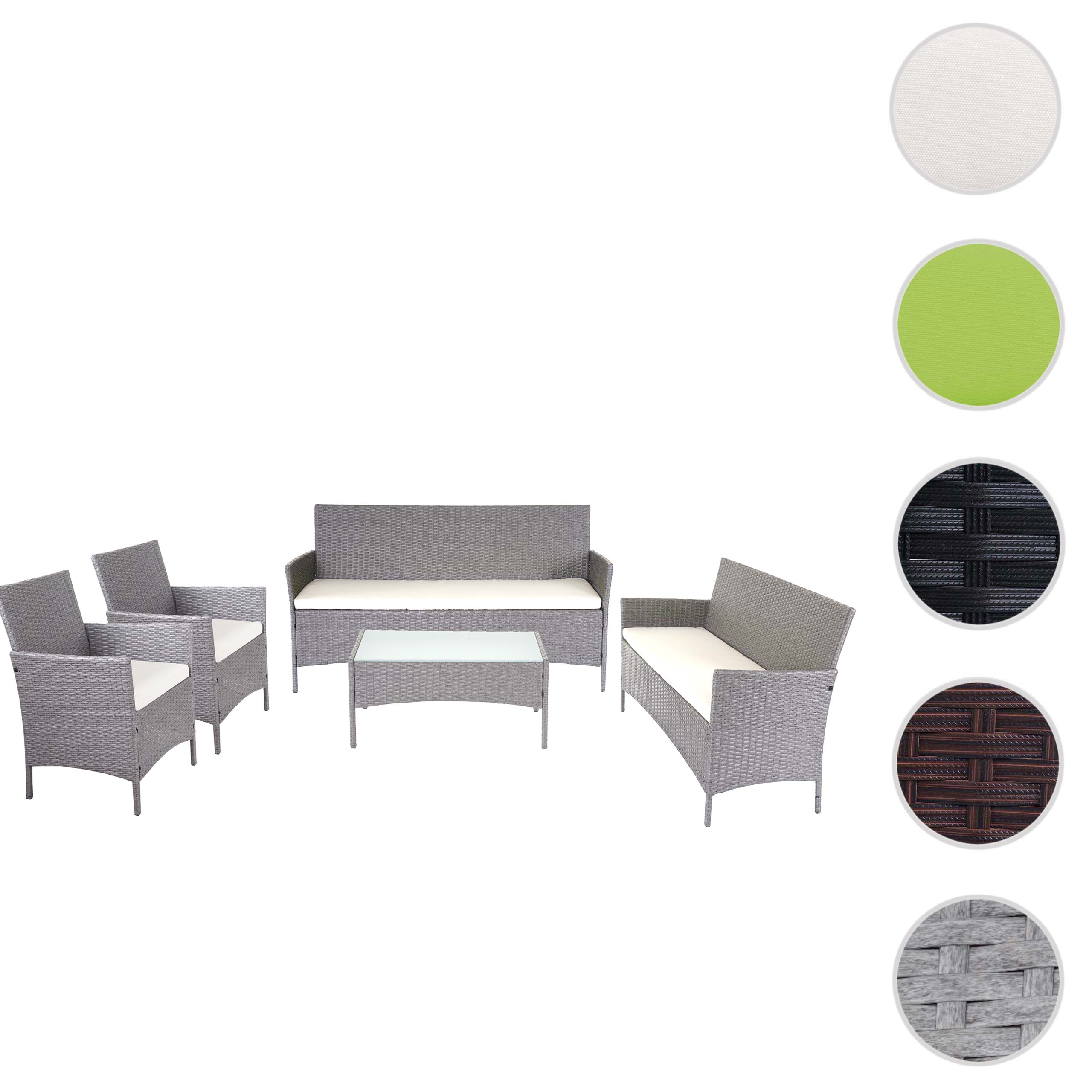 Contenu de la livraison : 2x fauteuil, 2x banc, coussin d'assise, 1x table avec plateau en verre (sans décoration)< br>