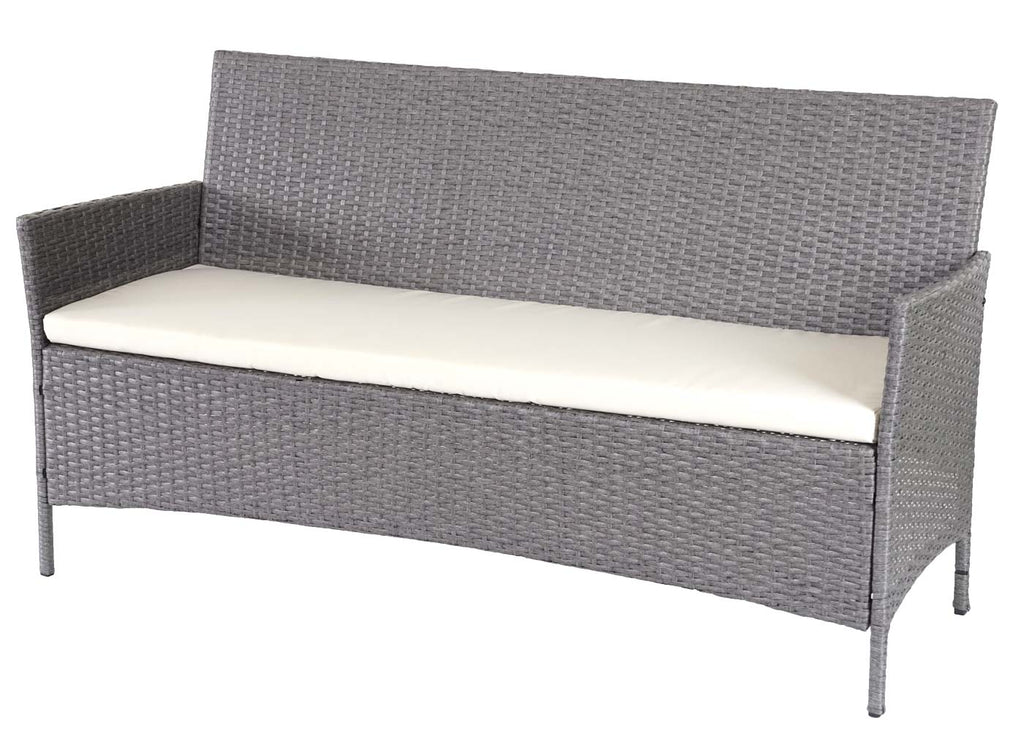 - Contenu de la livraison : 2x fauteuils, 2x banc, coussins d'assise, 1x table avec plateau en verre